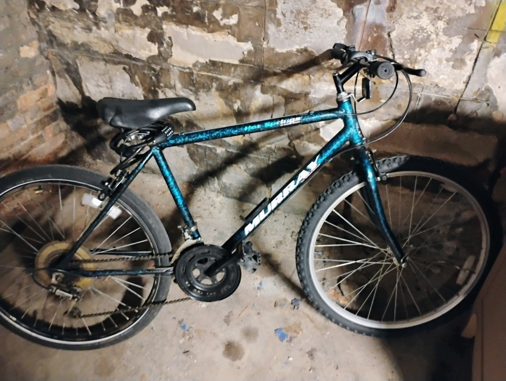 Selling a Murray Baja bicycle. It's got a cool blue speckled frame. The tires look to be in good condition.