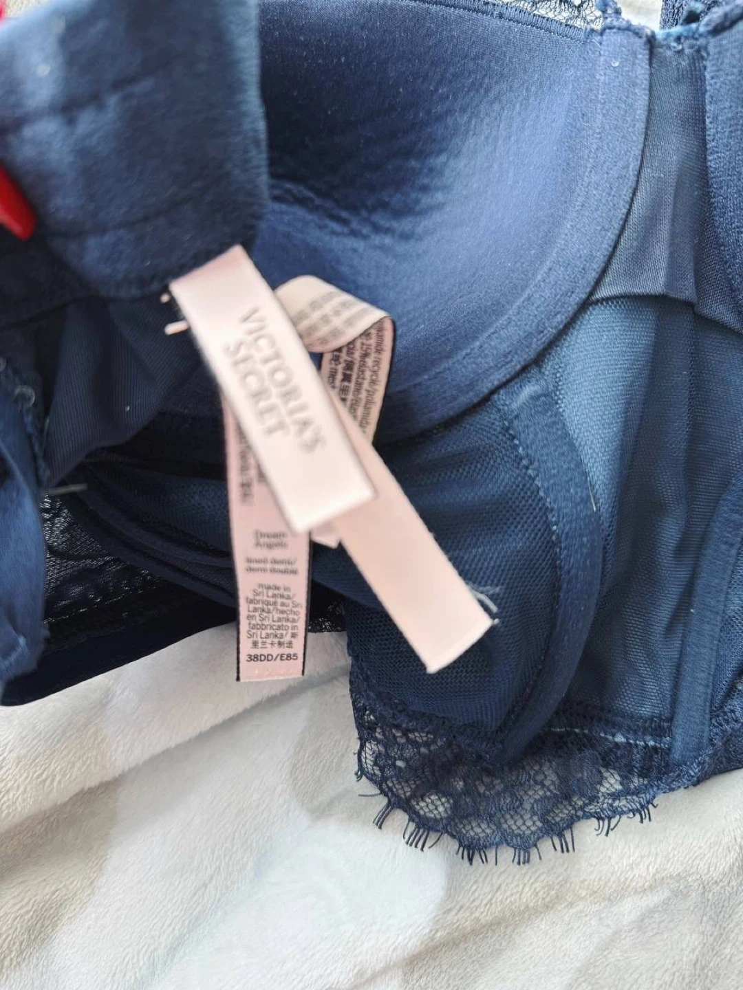 Navy blue velvet corset bra. Features delicate lace detailing and rhinestone-embellished straps. Worn 2 times, excellent condition.