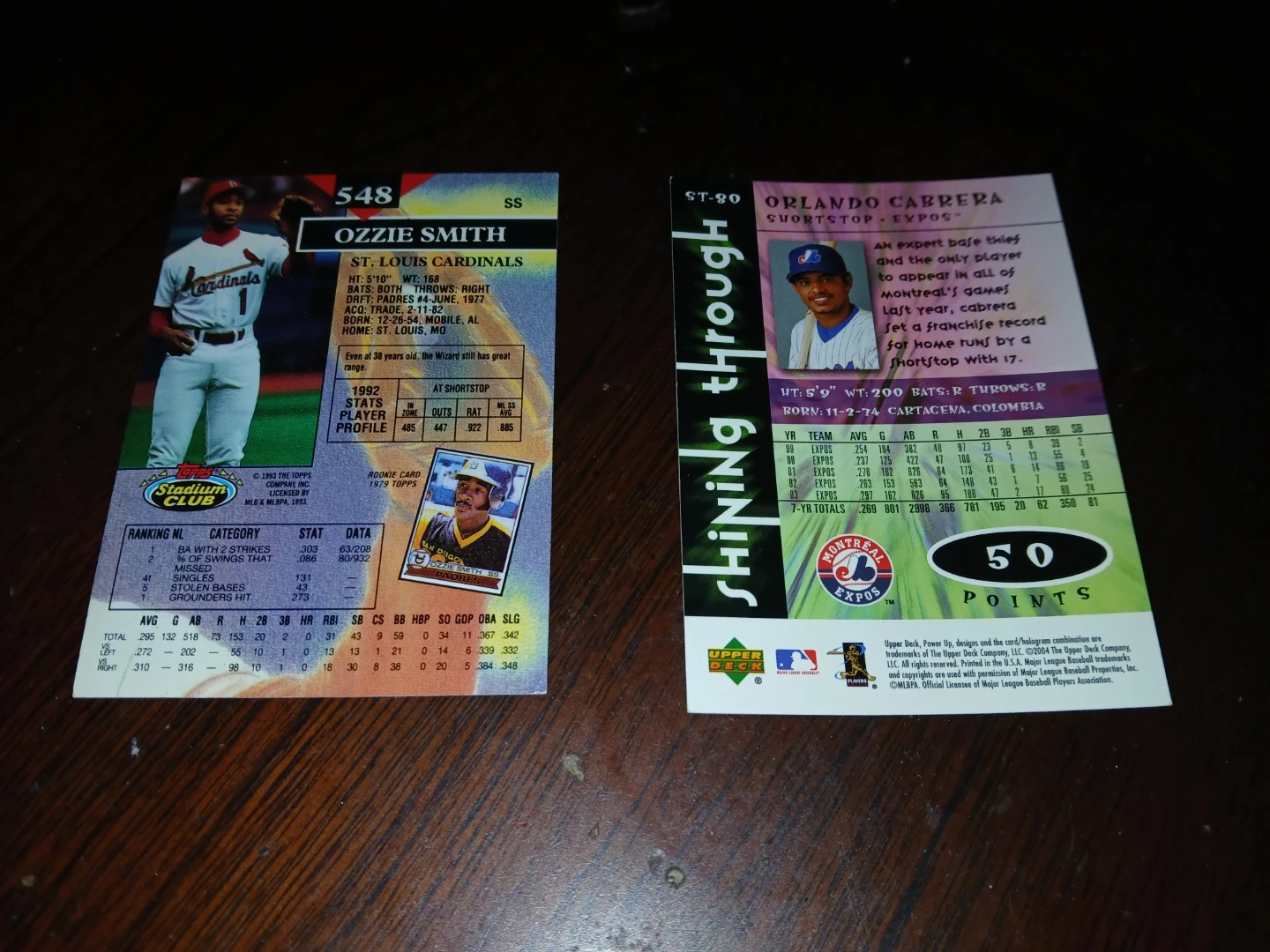 Ozzie Smith & Orlando Cabrera Baseball Cards