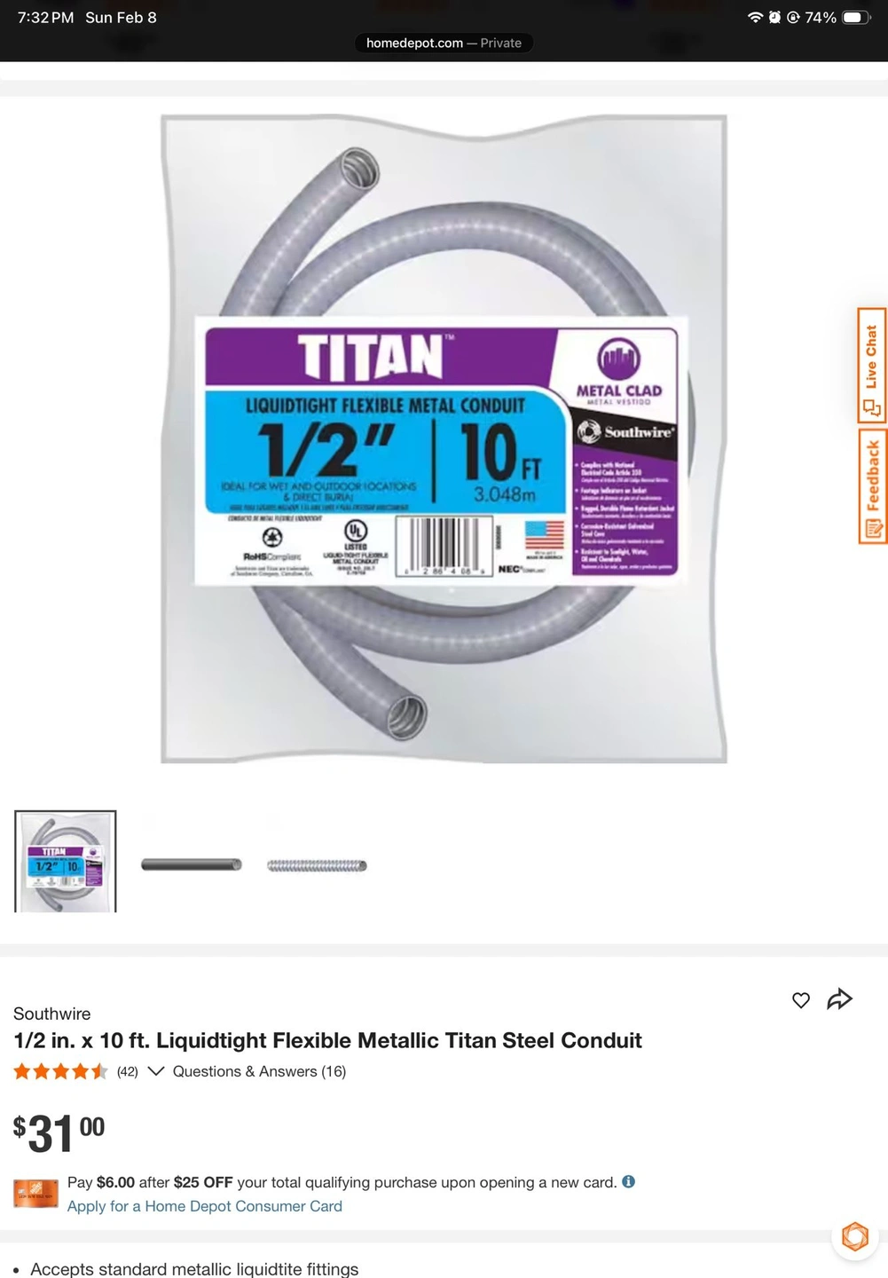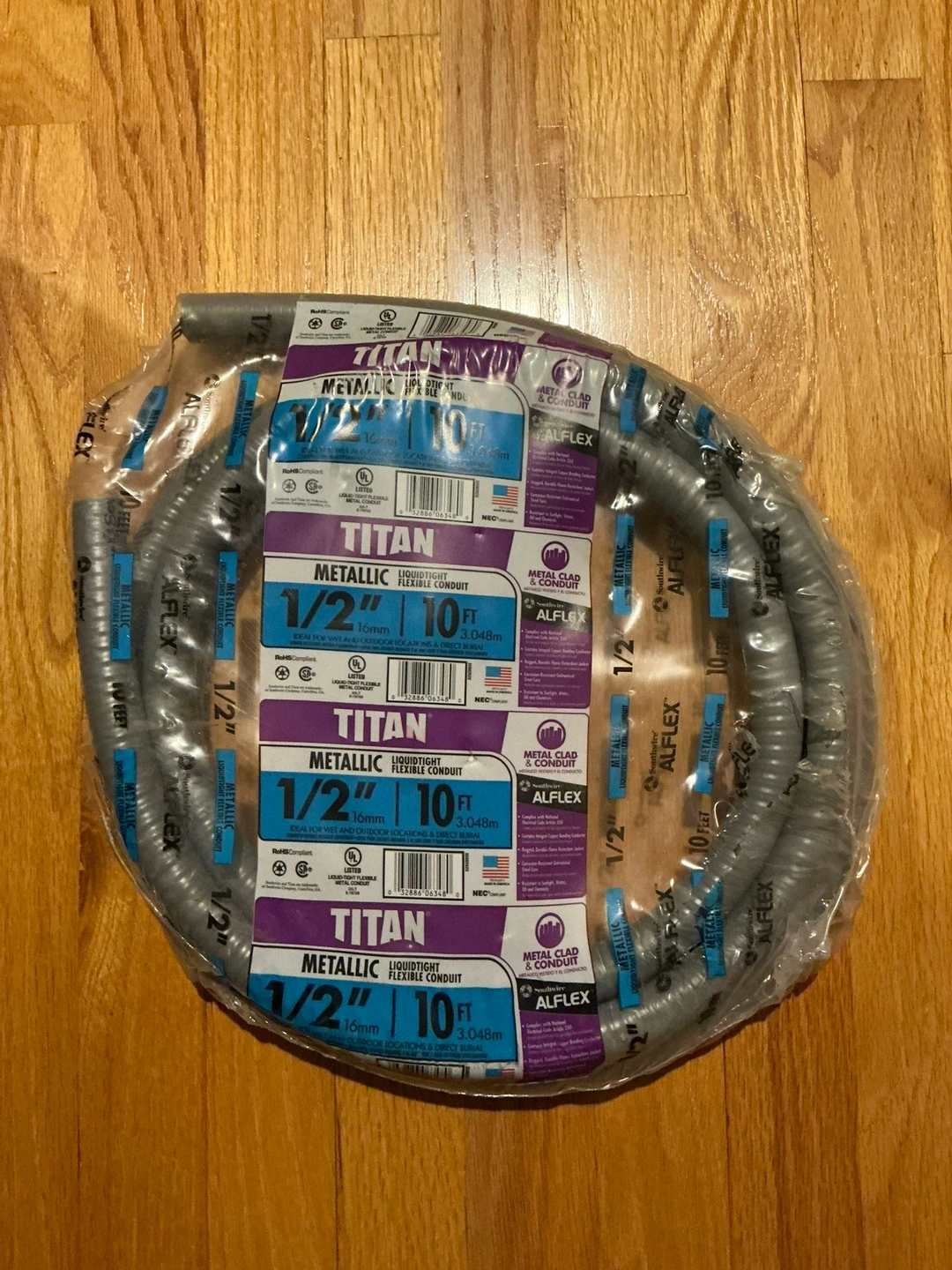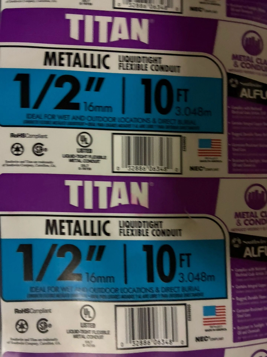Southwire ALFLEX 1/2 in. x 10 ft. Titan Metallic Liquidtight Flexible Conduit. Body Material: PVC over galvanized steel. Brand: Southwire.