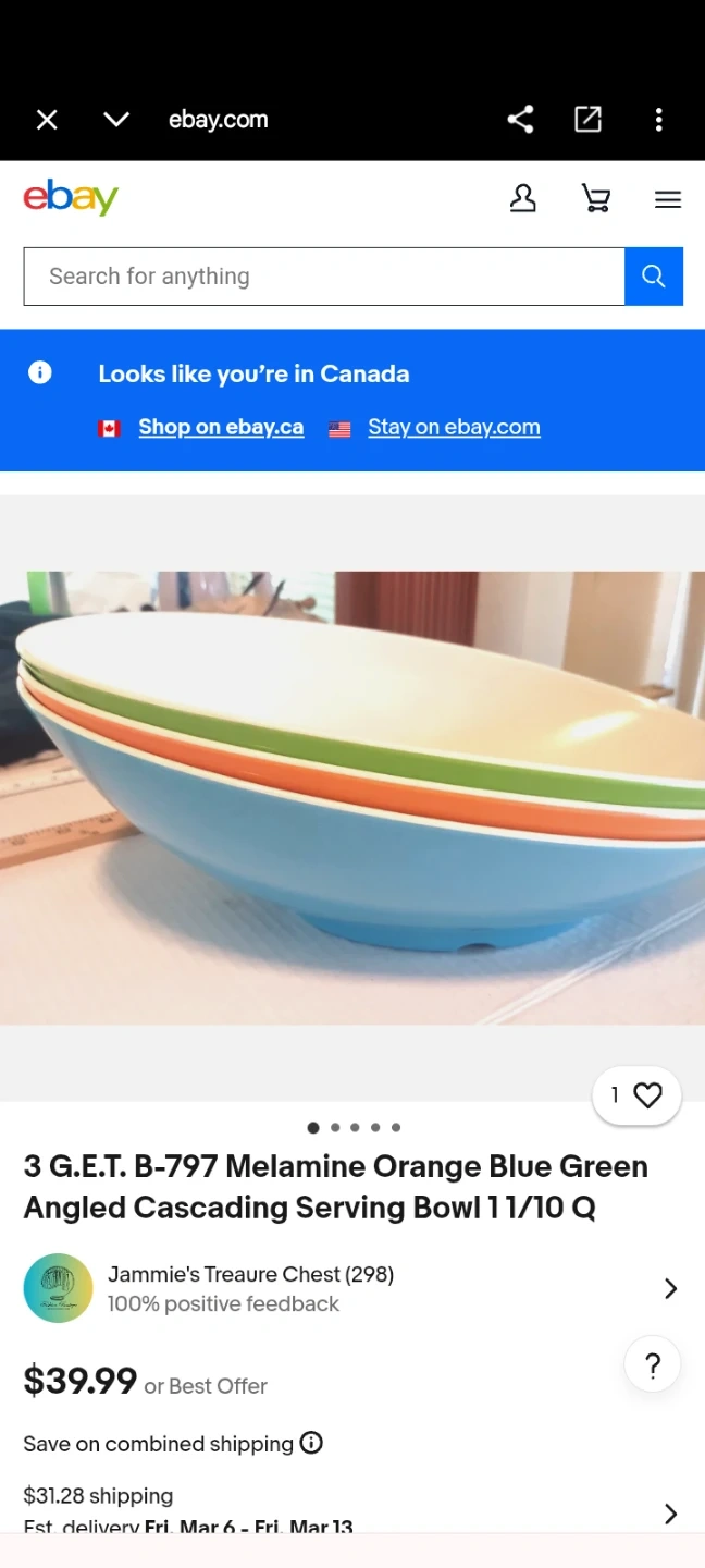 • G.E.T. B-797 Melamine Orange Blue Green Angled Cascading Serving Bowl