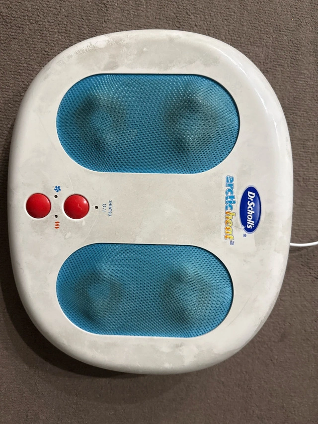 Experience soothing relief with this Dr. Scholl's Arctic Heat foot massager, featuring shiatsu massage and cooling or heating options for personalized comfort. This unit has seen use and shows some cosmetic wear, but it functions perfectly, ready to ease your tired feet. Features: * Shiatsu massage nodes * Cooling function * Heating function * Two massage intensity settings