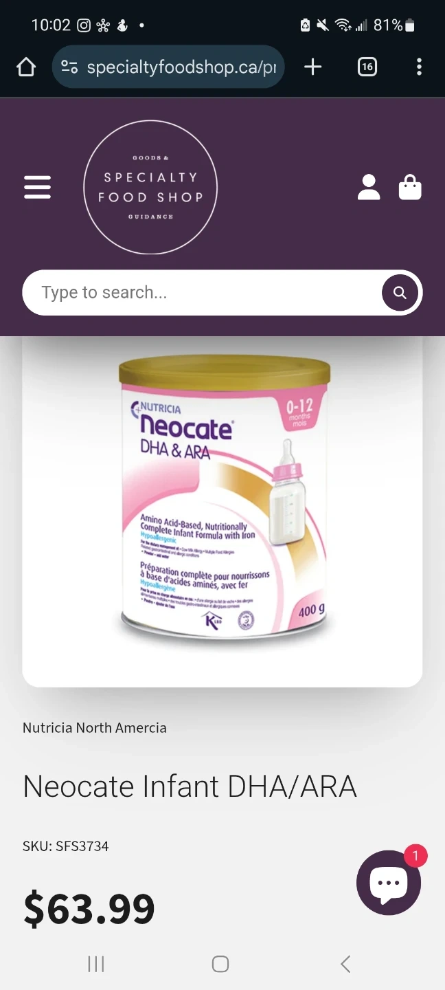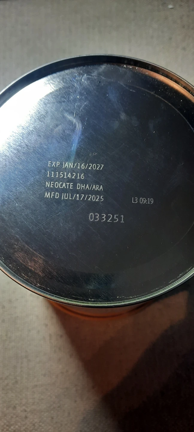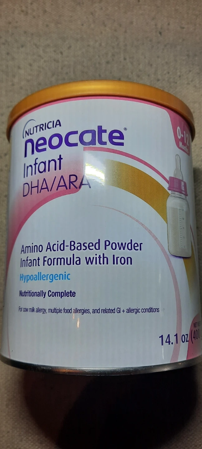 Neocate Infant DHA/ARA is an amino acid-based powder infant formula with iron. It's nutritionally complete and hypoallergenic. Manufactured on Jul 17, 2025, with an expiration date of Jan 16, 2027. This formula is suitable for babies aged 0-12 months, especially those with cow milk allergy, multiple food allergies, and related GI or allergic conditions.