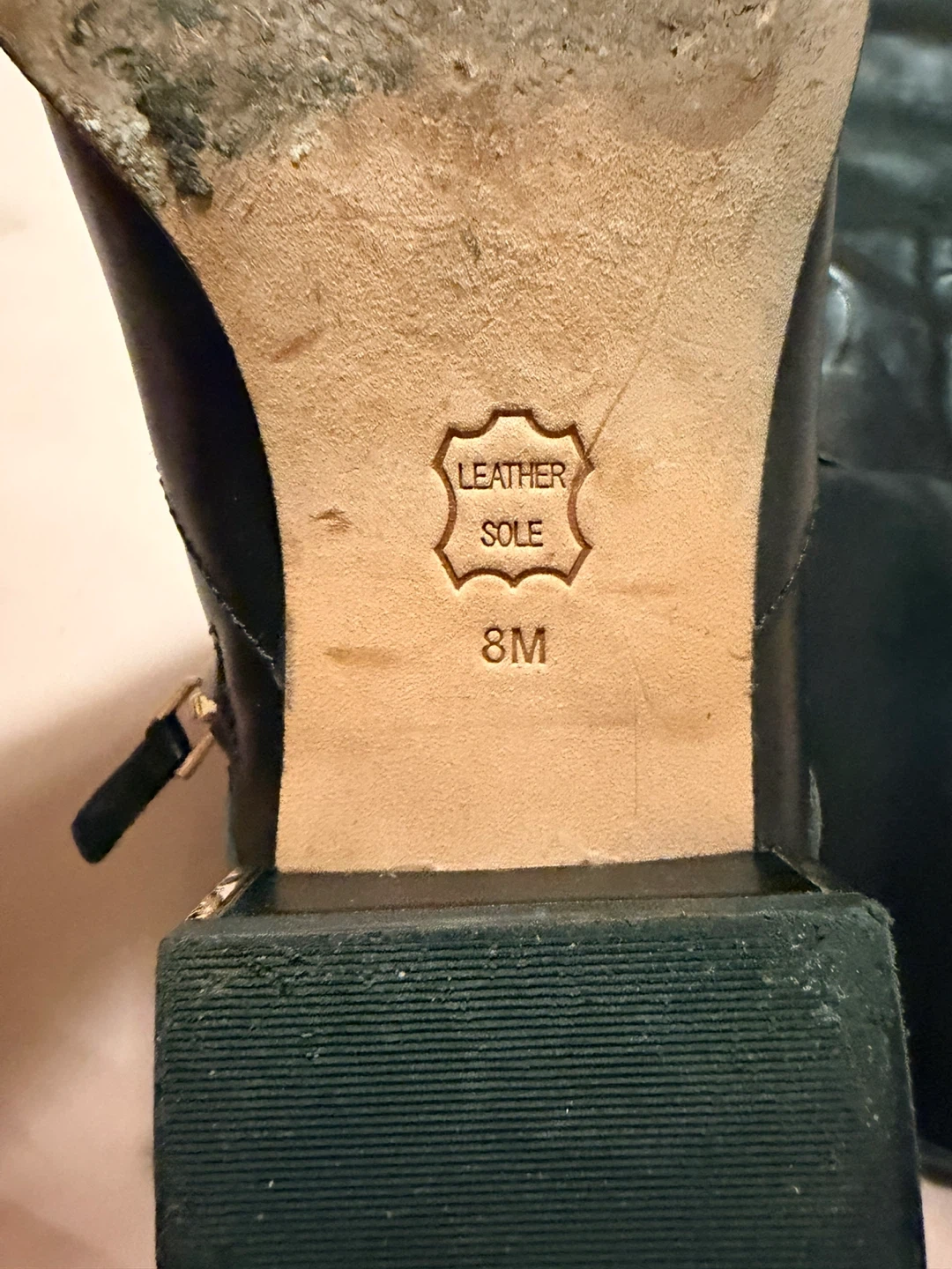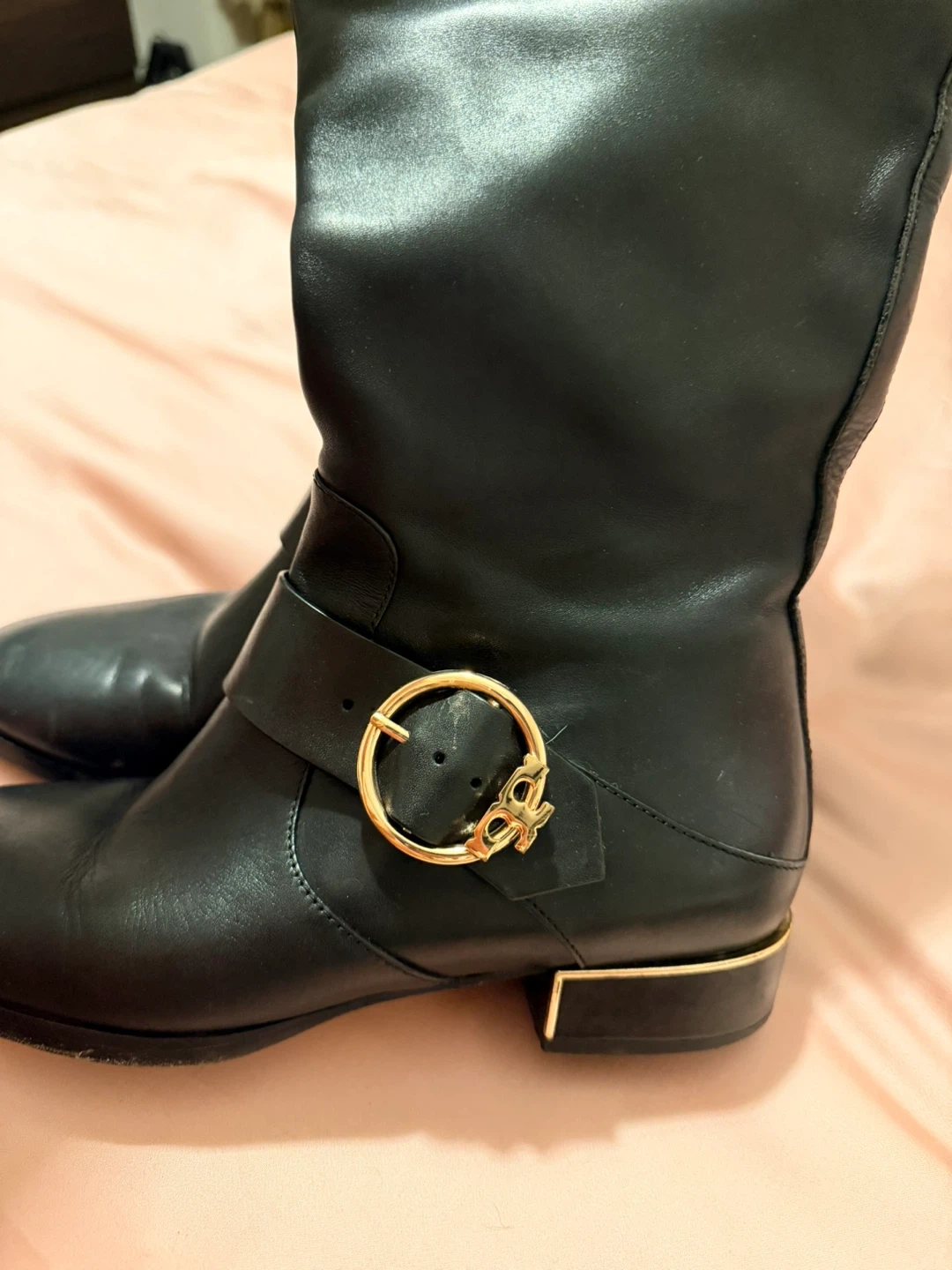 Tory Burch Black Leather Boots with Gold Buckle - Size 8M