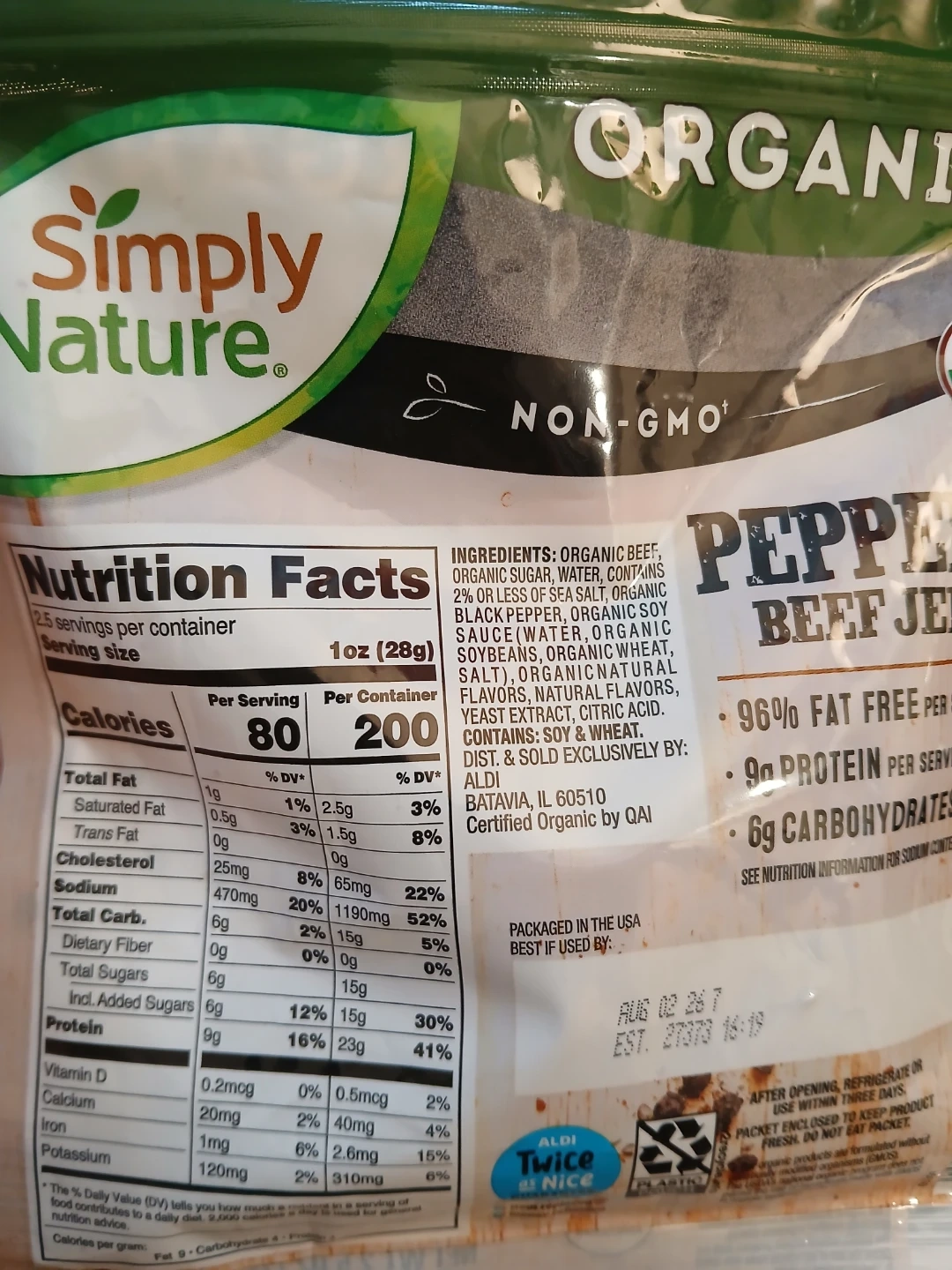 Simply Nature Organic Peppered Beef Jerky - 2.5 oz 🧡