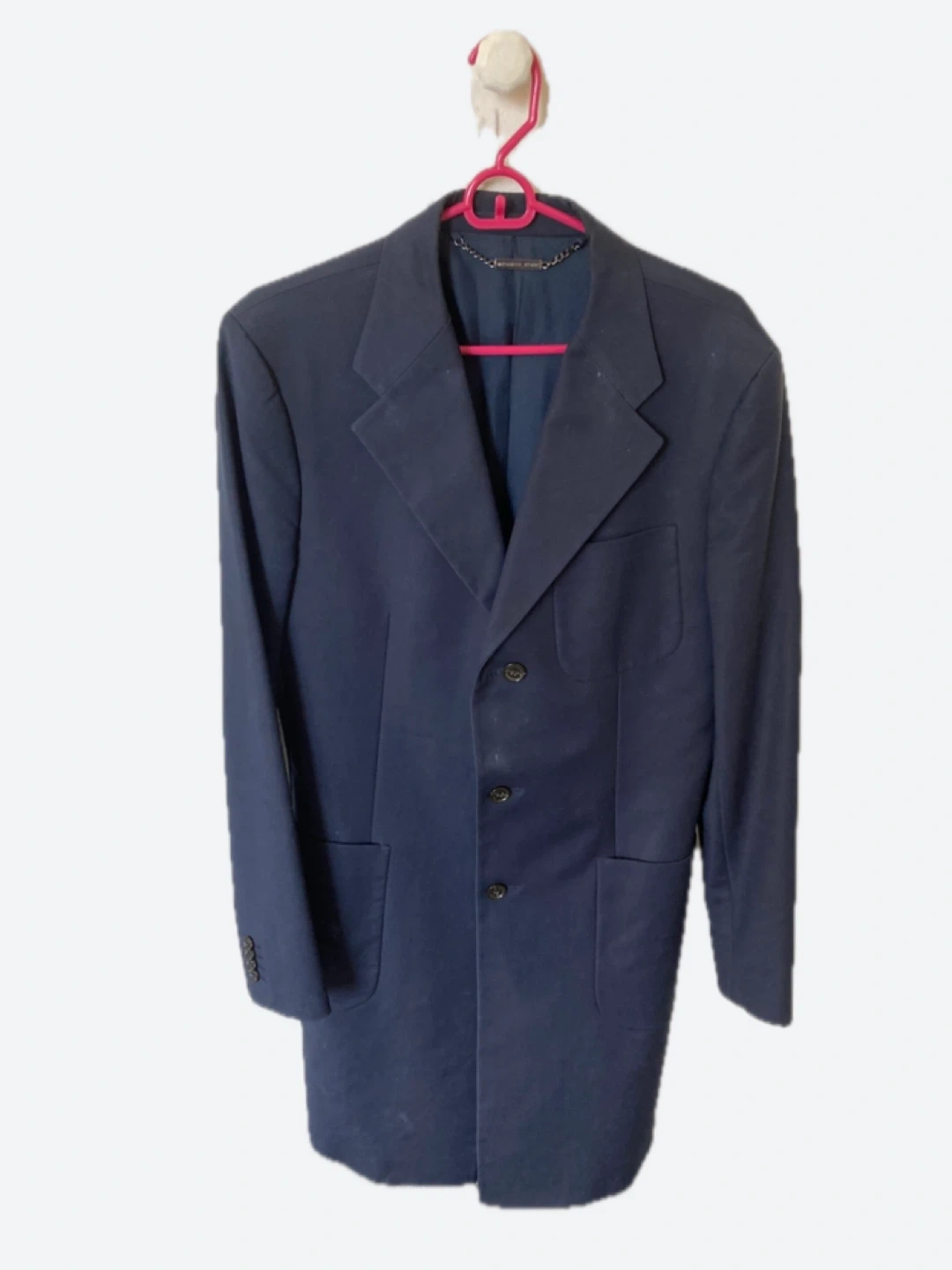 Navy blue blazer from Michael Kors. Classic single-breasted design with a notched lapel. Fully lined interior.