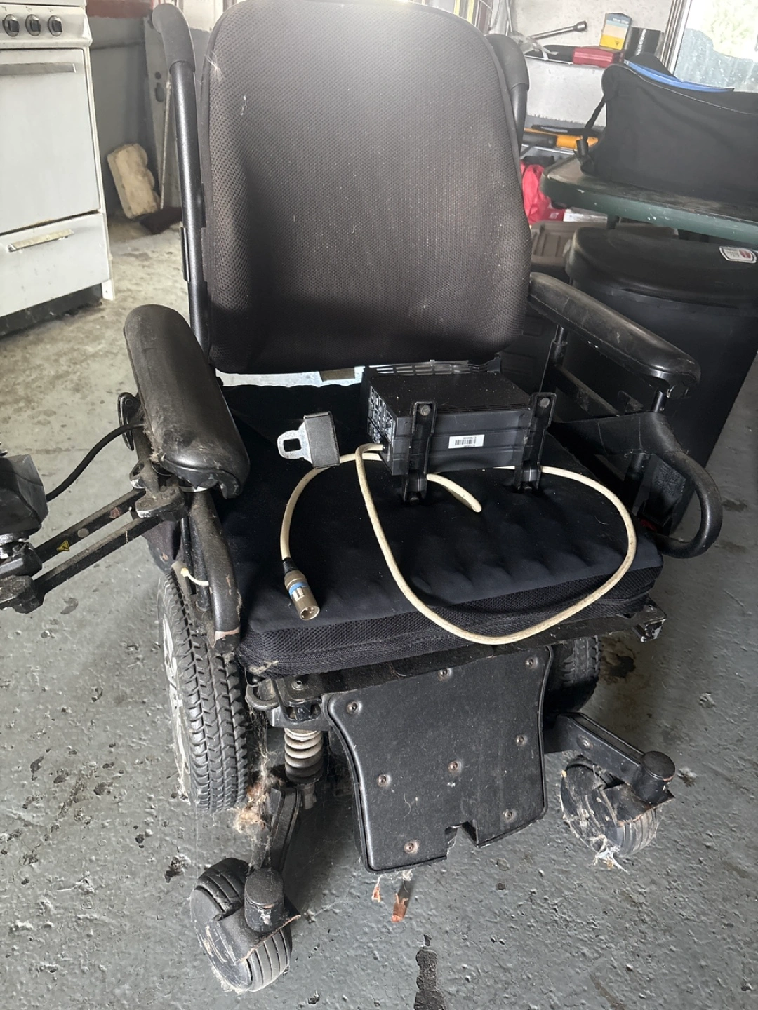 Selling a Quantum power wheelchair. It's in used condition and needs a tuneup. The chair features a joystick control and a comfortable seat. Perfect for someone needing mobility assistance