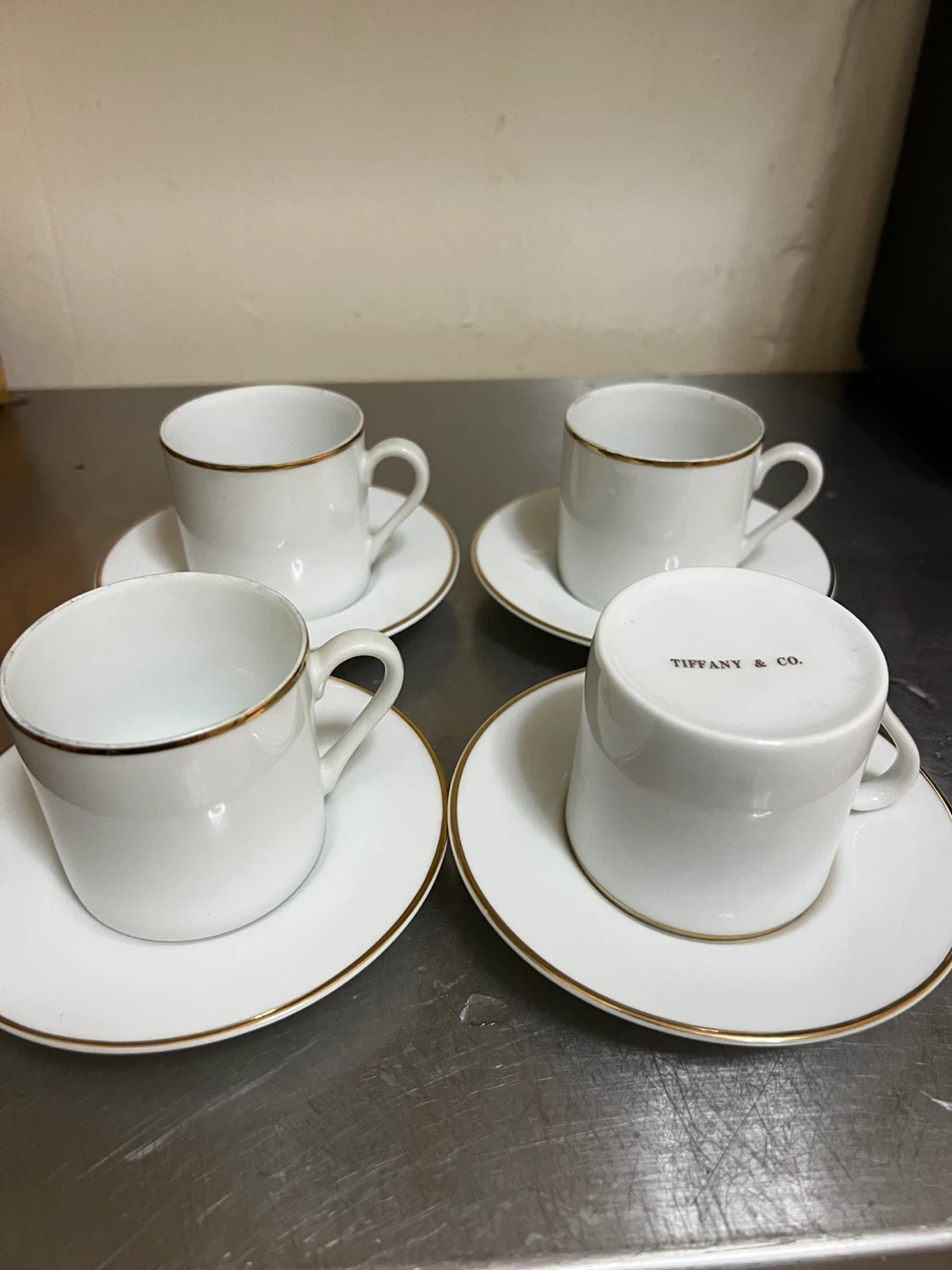 Tiffany & Co. White Espresso Cups & Saucers Set of 4
