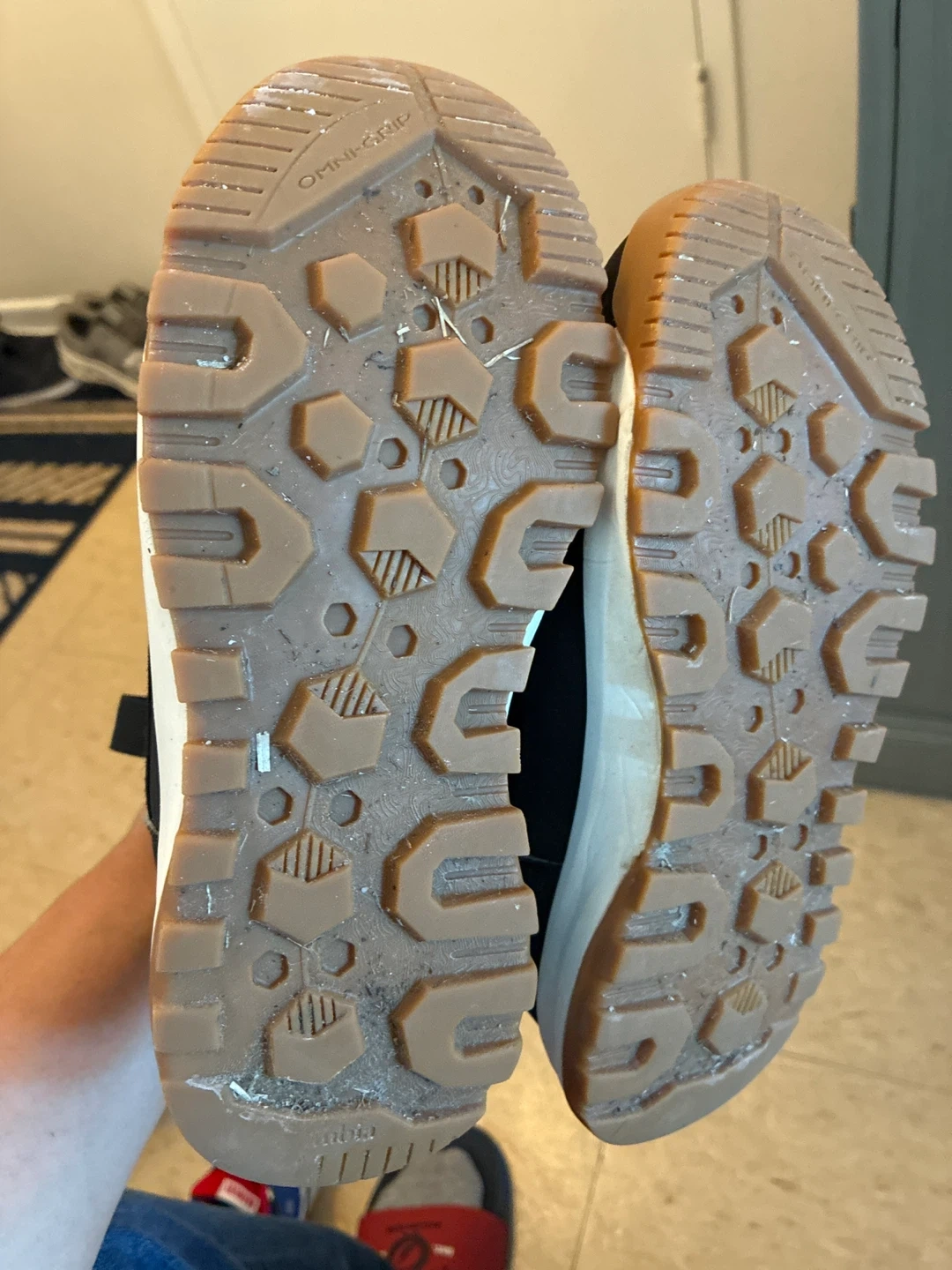 These Columbia winter boots are black with a durable Omni-Grip sole for traction. They're designed for warmth and comfort in cold weather. Made in Vietnam. These are great for keeping little feet toasty and dry on snowy days!