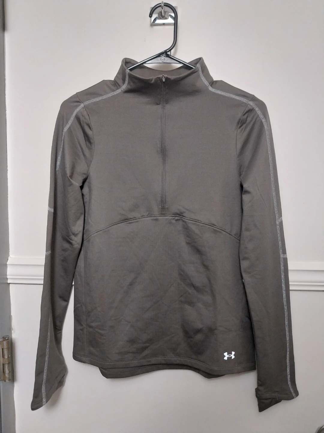 This is a women's Under Armour 1/2 zip pullover. It's designed for training and has a fitted cut. The material is lightweight and breathable. Perfect for workouts!