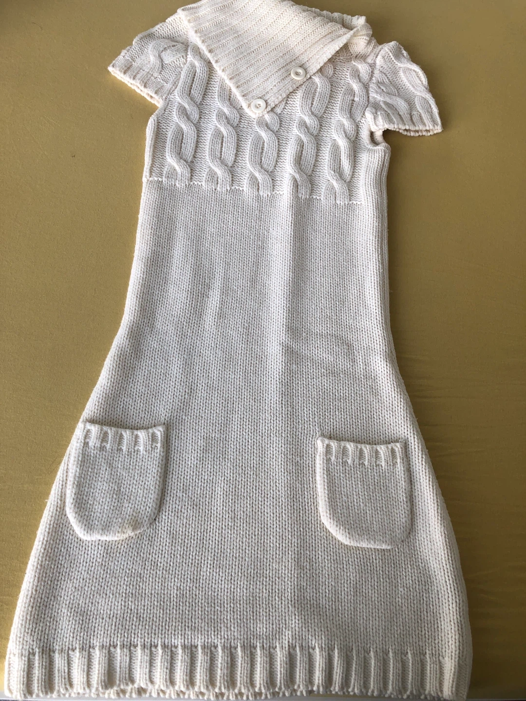Cream knit dress from UK2LA. It has short sleeves and a stylish cowl neck. Two front pockets included. Check out my other postings, Combo deals and great discounts when purchasing 2 or more items.