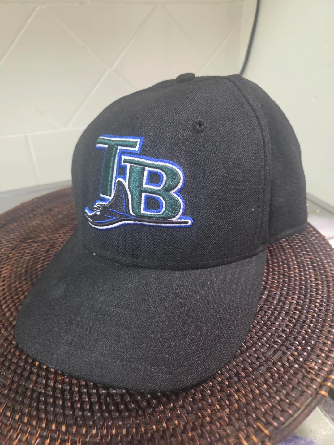 New Era Tampa Bay Rays TB Baseball Cap Hat Size 7 3/8 Black