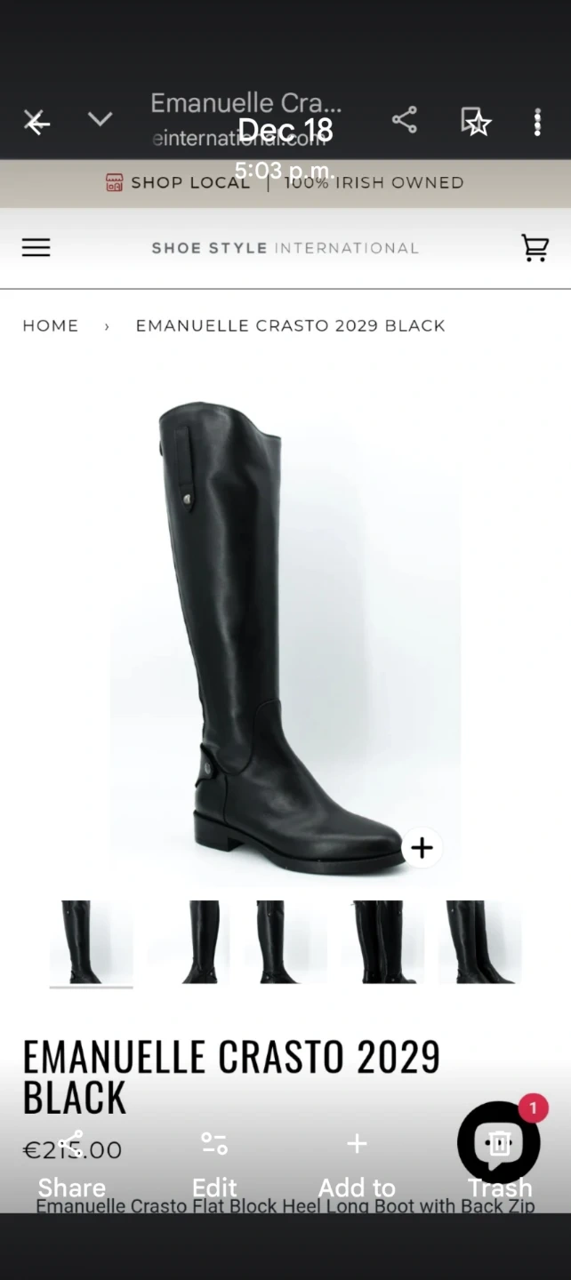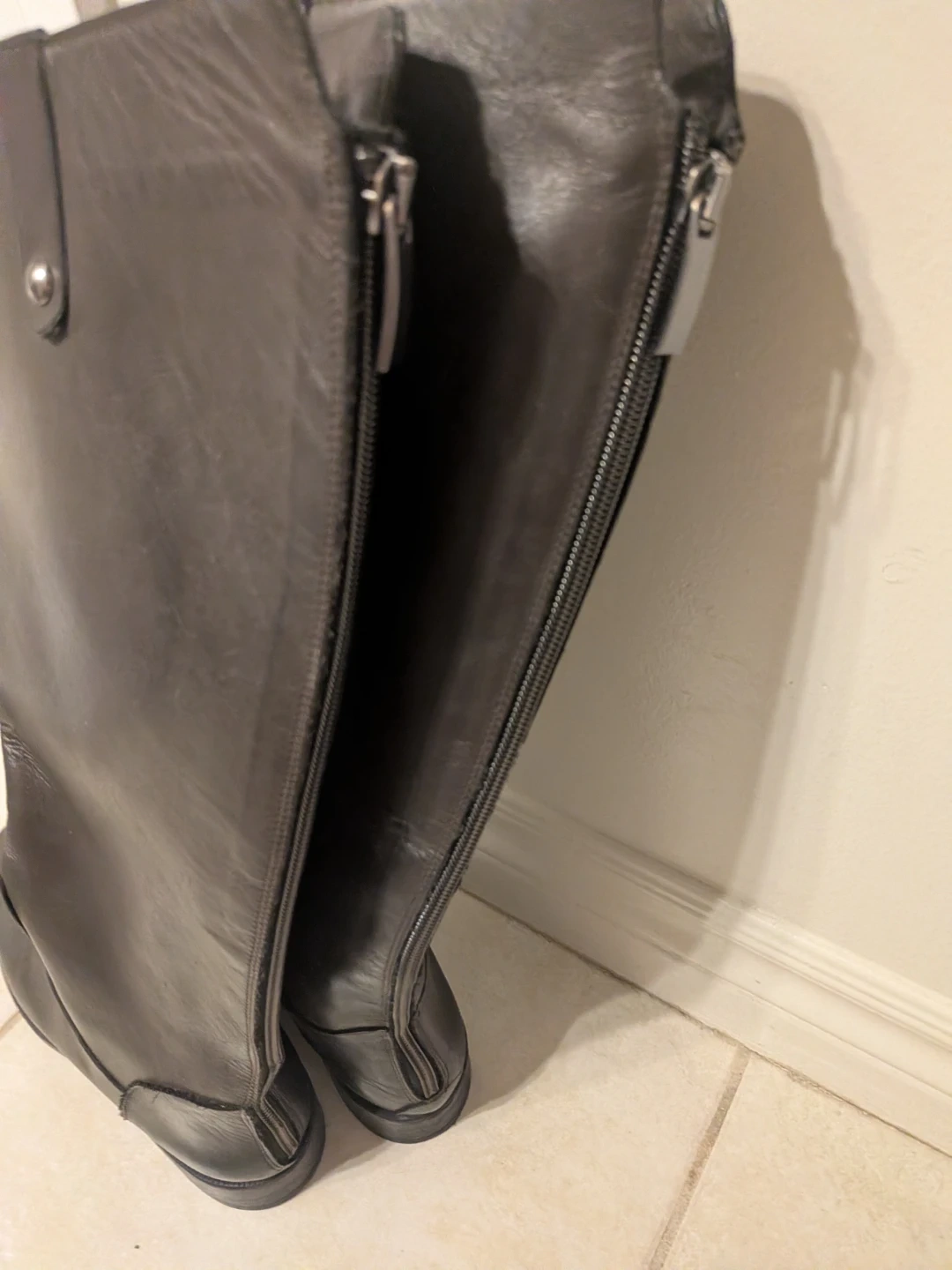 Here are a pair of Emanuele Crasto knee-high boots! They are made in Italy and feature a sleek black leather design. They are in great condition and ready for a new home! Excellent addition to your boot choices. Very attractive as the leather is excellent quality and the zipper at the back make them so easy to put on and take off. Pictures also include the finger loops at top so as to pull on. Worn 2 times and unfortunately need to pass to new wardrobe. A beautiful pair of boots like this shouldn't be vacated in my closet 😉