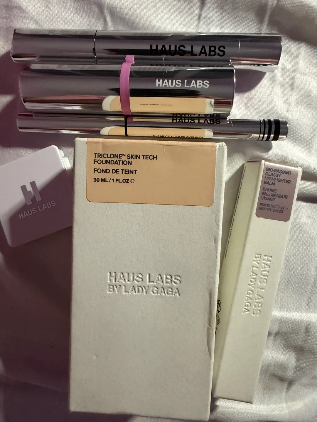 Includes Haus Labs Triclone Skin Tech Foundation in 050 Fair Cool, Bio-Radiant Glassy Highligter Balm, and a Mini Bio-Radiant Gel Powder Highlighter in Rose Quartz. Foundation is 30ml/1 fl oz. Balm is 0.31 oz. Mini highlighter is 1.5g/0.05 oz.