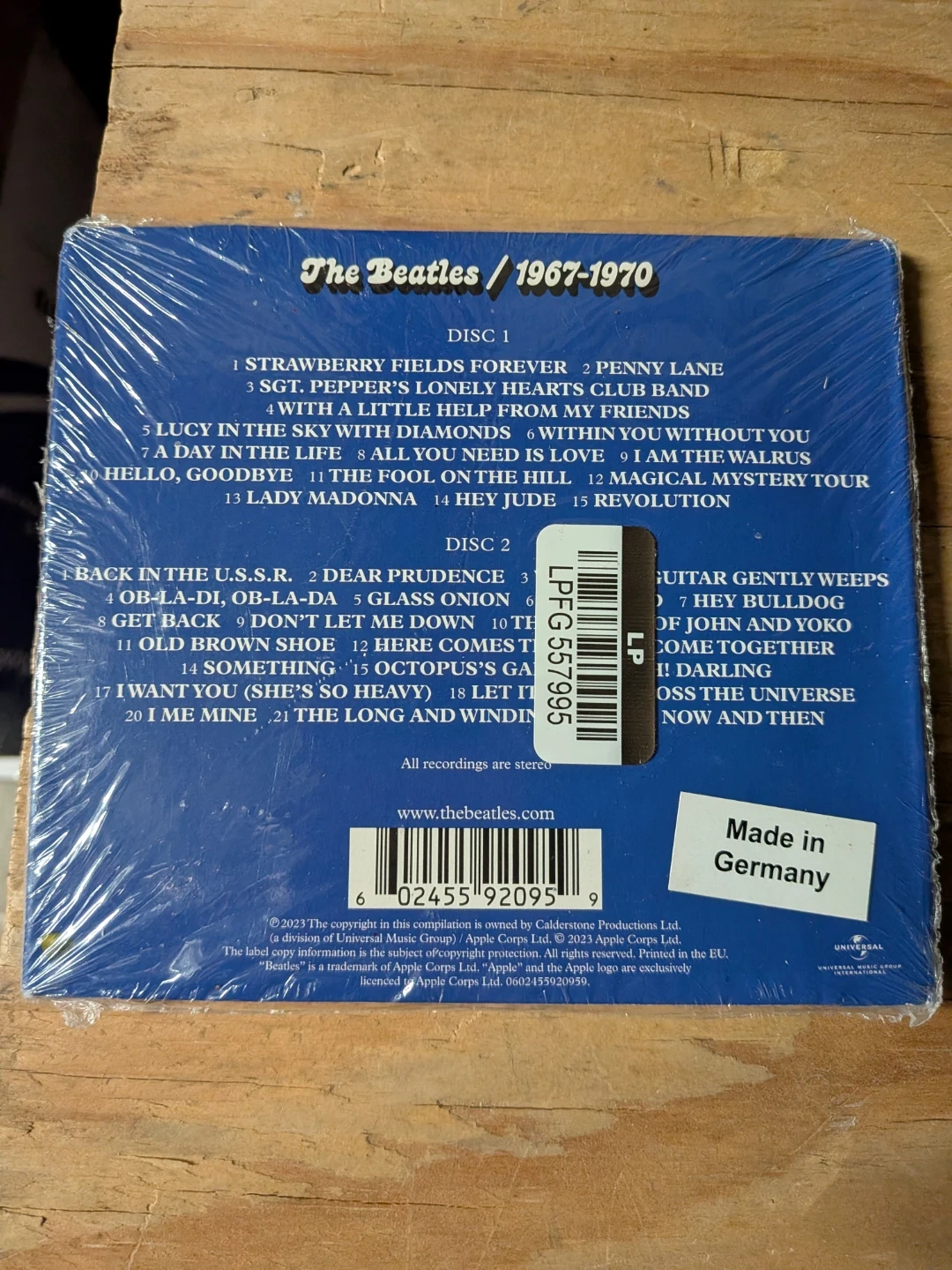 This is a 2CD compilation album by The Beatles titled 1967-1970. It features 37 tracks, including the single "Now And Then". The album is made in Germany.