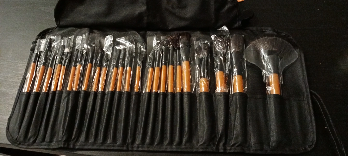 Selling a makeup brush set that comes with a convenient carrying case. The brushes appear to be in new condition, still sealed in their individual plastic coverings. Perfect for makeup enthusiasts or anyone looking to upgrade their brush collection!