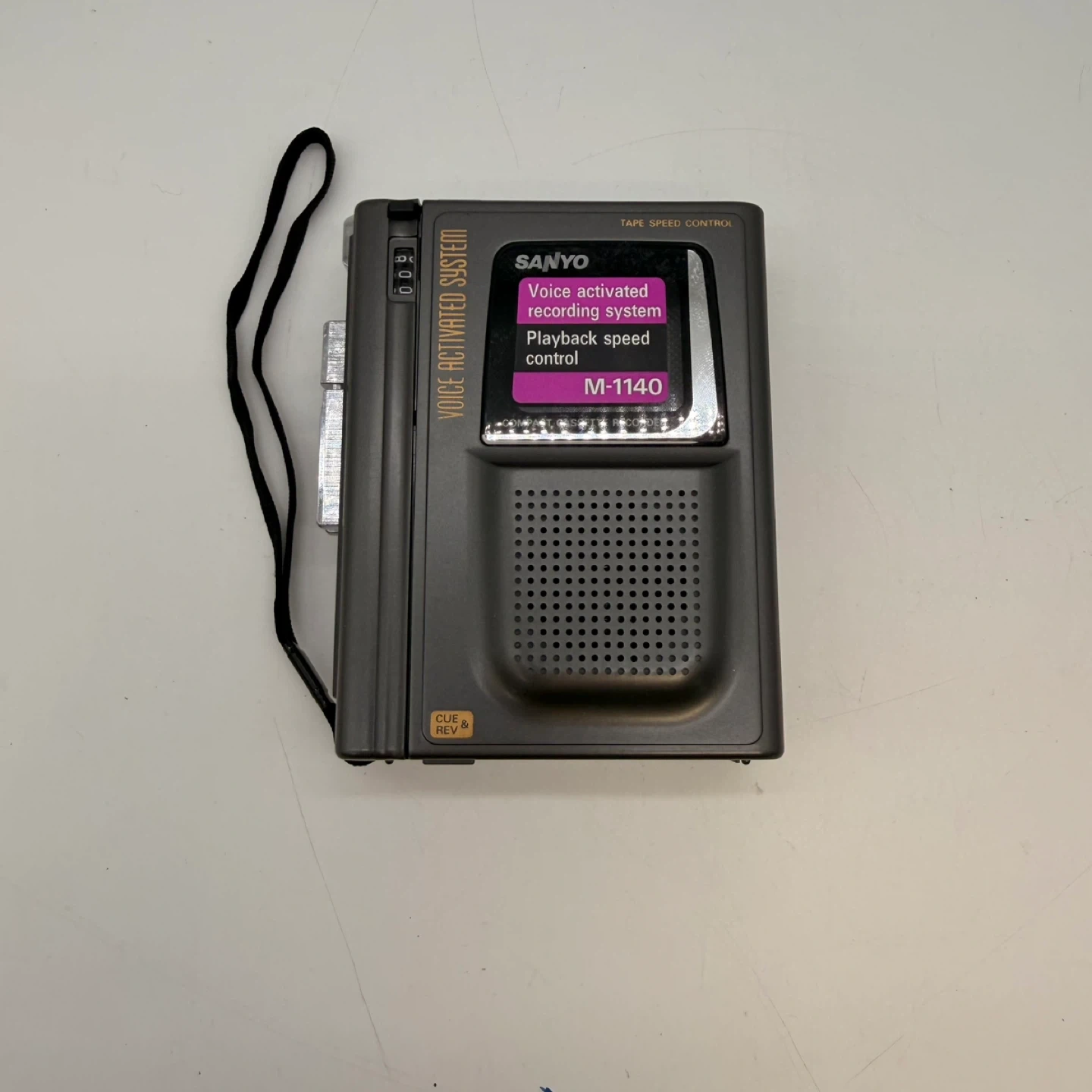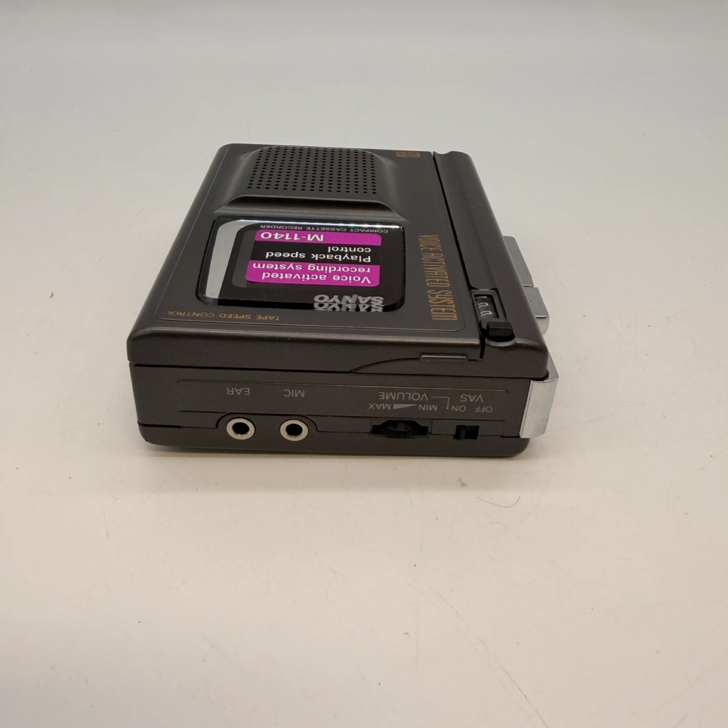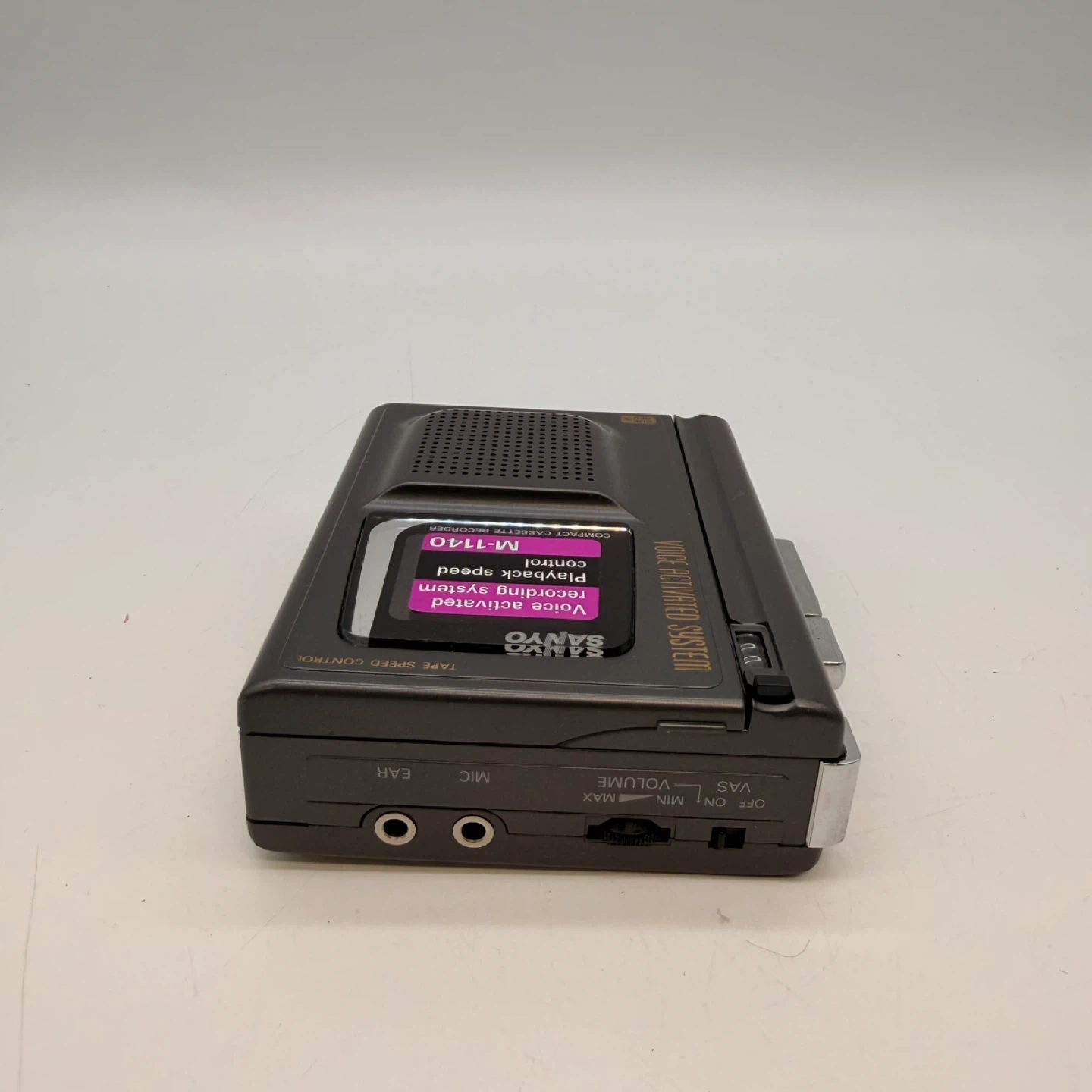 Sanyo portable cassette voice recorder model M-1140. Features voice-activated recording system (VAS) and playback speed control. Unit powers on and buttons respond. Cosmetic condition is good with normal wear from age (see photos). πŸ“¦ Local pickup available 🚚 Delivery available for extra fee 1307 e3