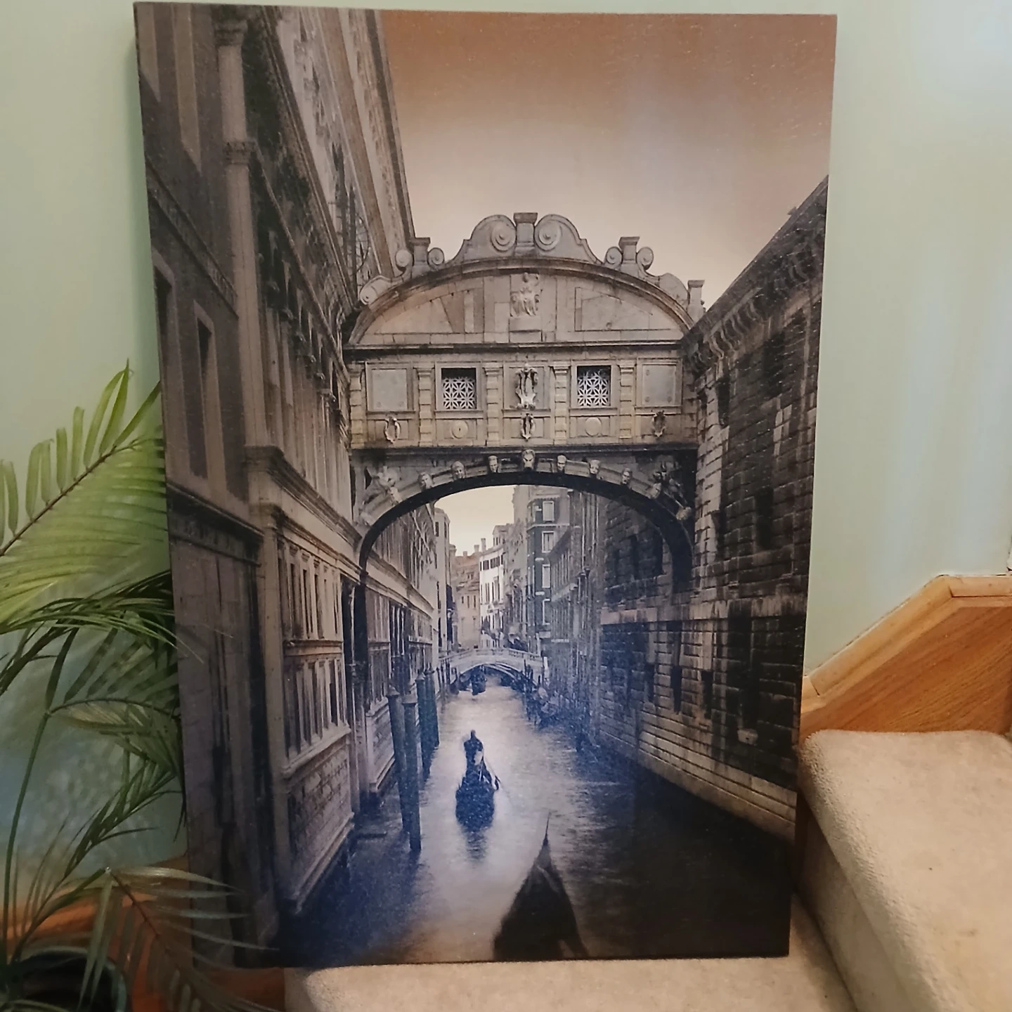 This canvas print showcases the iconic Bridge of Sighs in Venice with a gondola. It's a sepia-toned scene that'll bring a touch of classic European charm to your space. Ready to hang on your wall! $80 located in georgetown