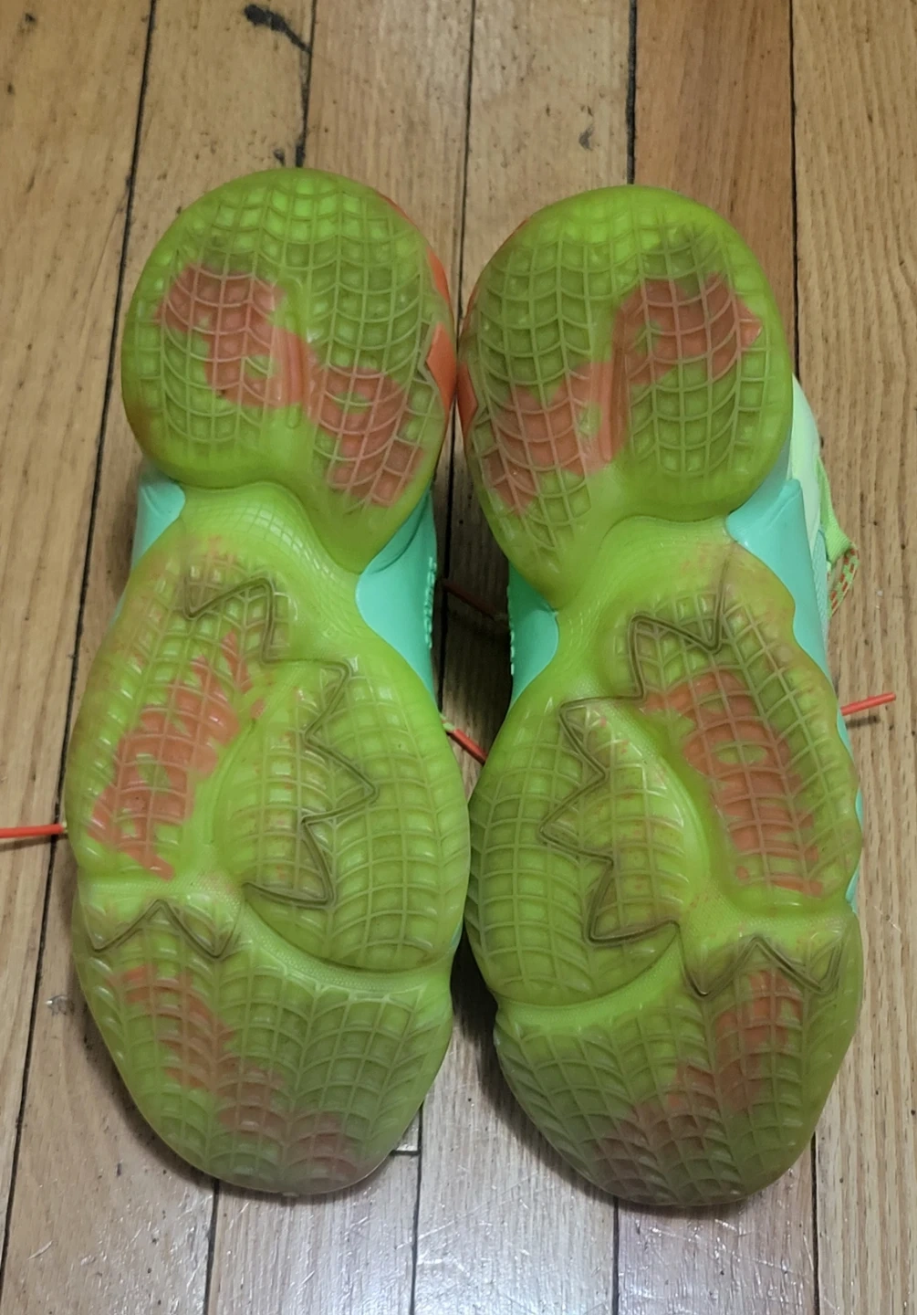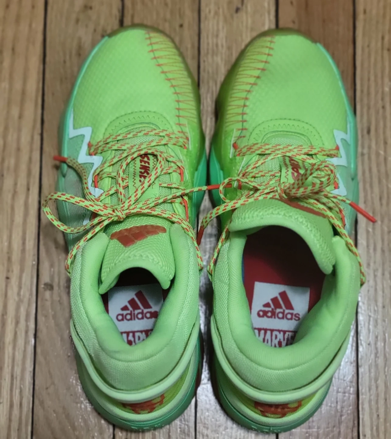 These Adidas Don Issue #2 basketball shoes are inspired by Spider-Man. They feature a bright green and orange colorway. The "Bounce" technology offers cushioning and support for athletic performance. These shoes are perfect for basketball players who want a stylish and functional shoe.