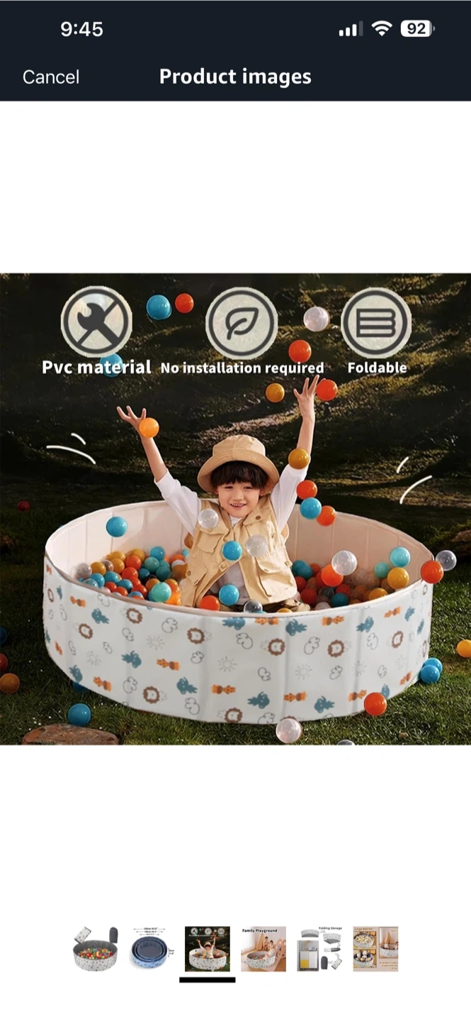 Selling a 47-inch baby ball pit! It's in great condition and ready for a new home. Perfect for indoor or outdoor use for toddlers. The material is PVC, making it easy to clean and foldable for storage. Great for a family playground!