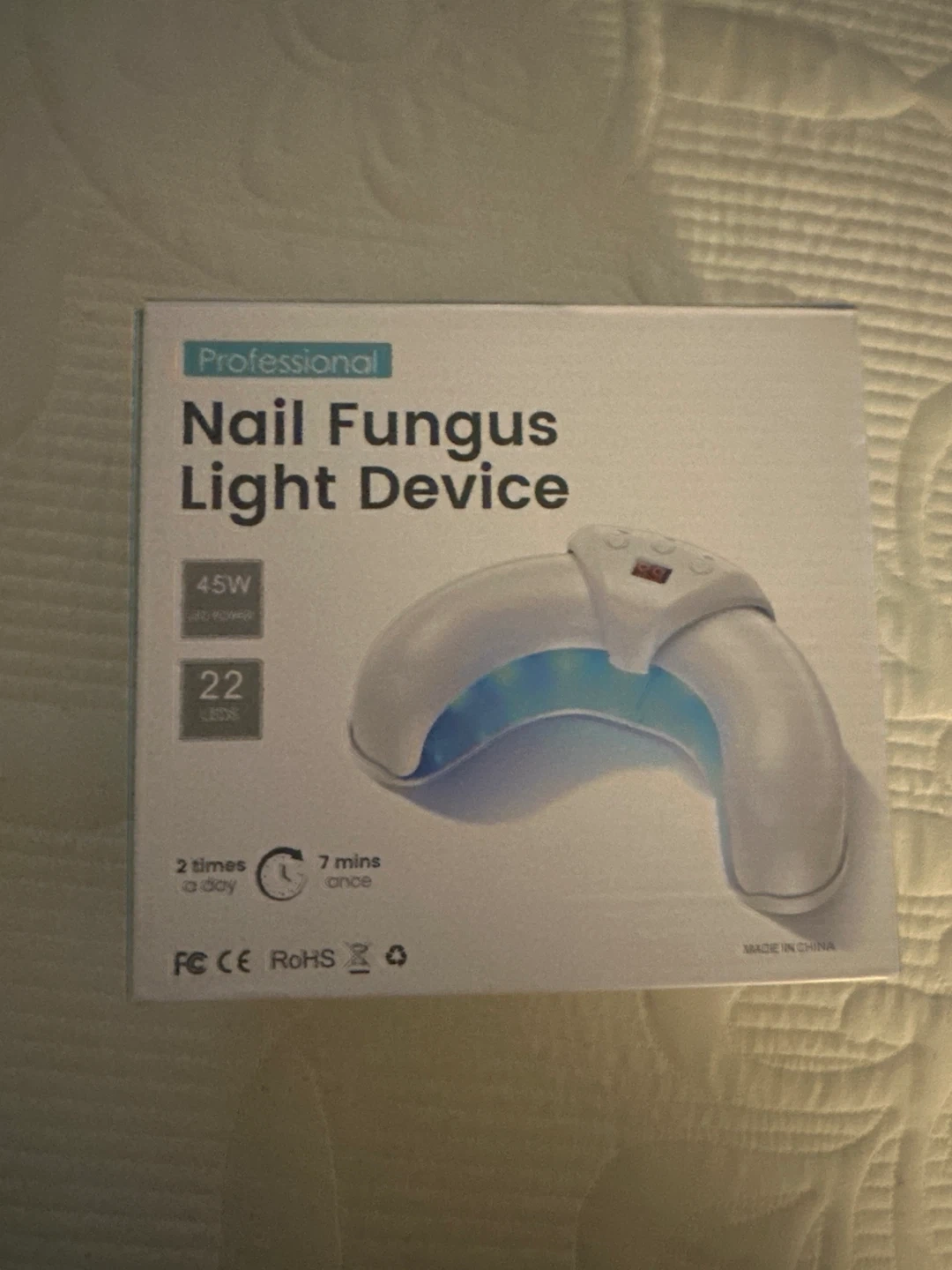 10Selling a professional nail fungus light device. It's a 45W device with 22 LEDs. It uses a double light: 905nm invisible Infrared Light +470nm Blue Light. Adapter: DC5V/2000mA