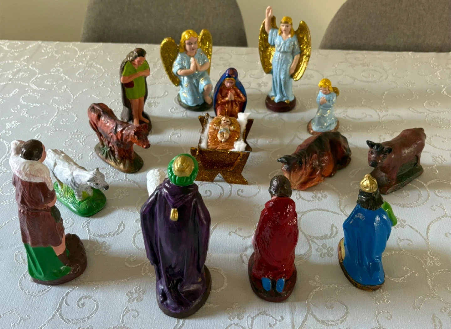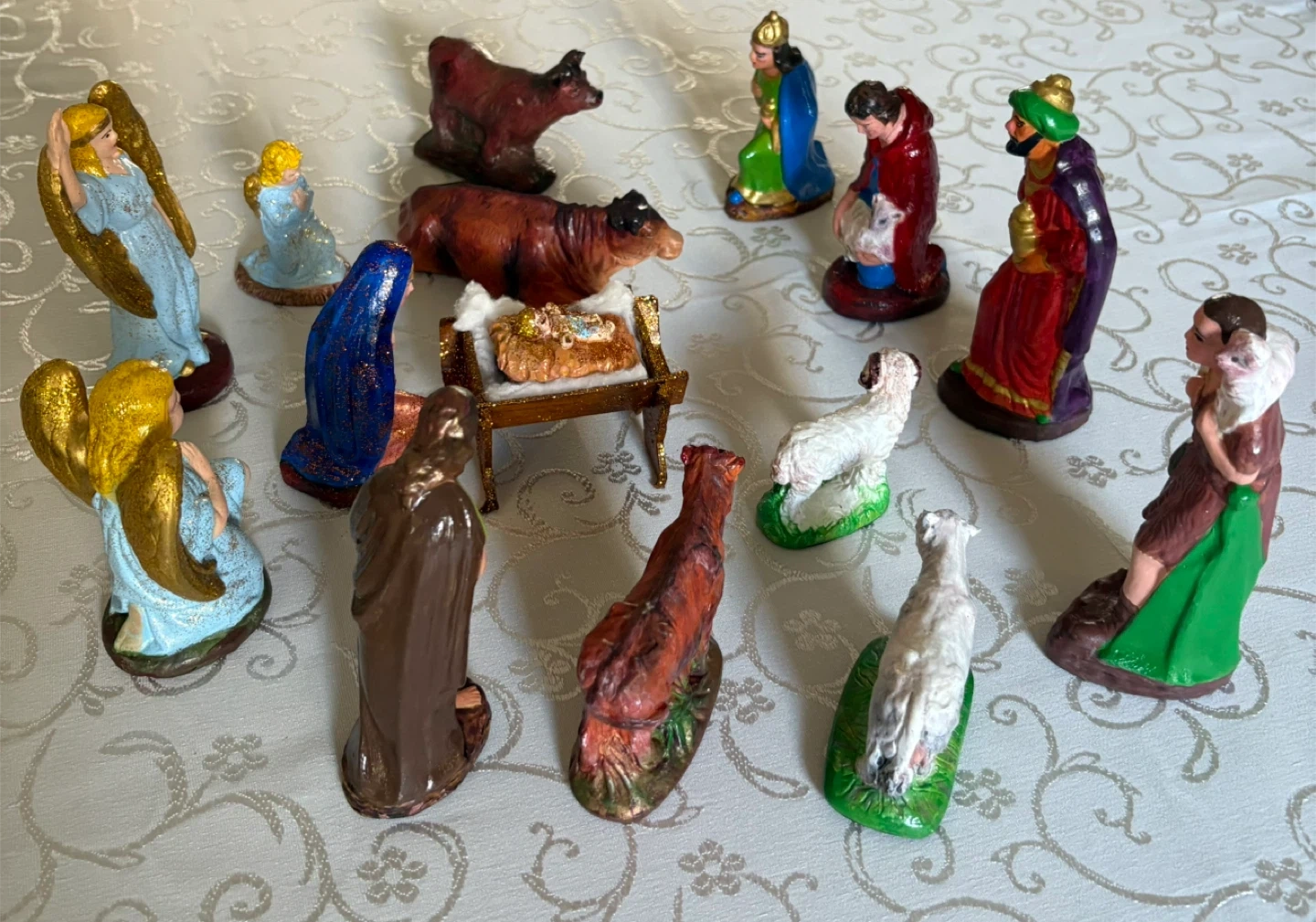 15Selling a complete nativity scene figurine set. Includes baby Jesus, Mary, Joseph, the three wise men, angels, shepherds, and animals. All figurines are in great condition! All just Hand painted. Free shipping