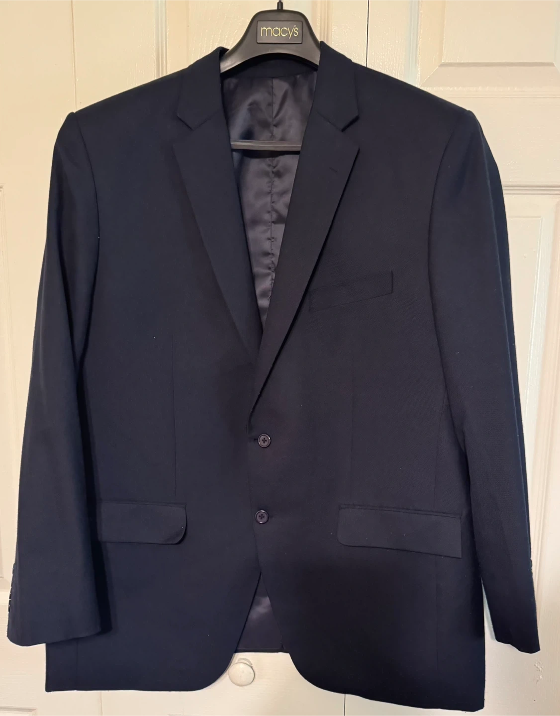 60Selling a tailor-made men’s suit in navy blue! It's in great condition and ready for a new home 50% wool shell