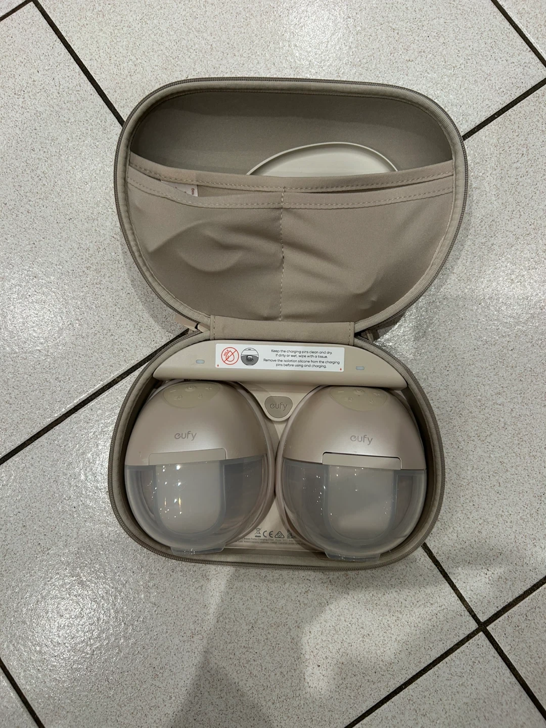 This is a set of Eufy double electric breast pumps. It comes with a portable carrying case. The pumps are designed for convenient and efficient milk expression.