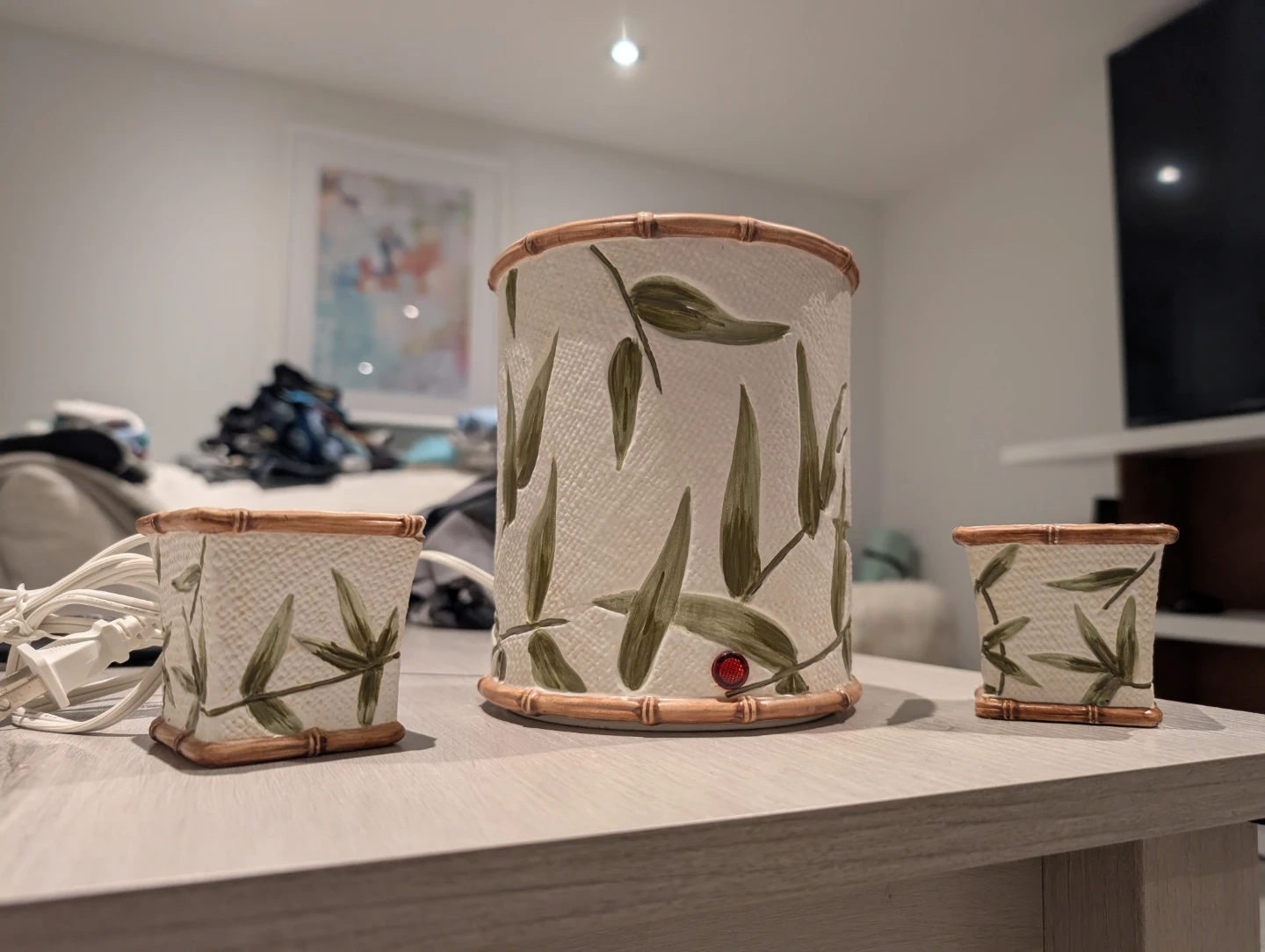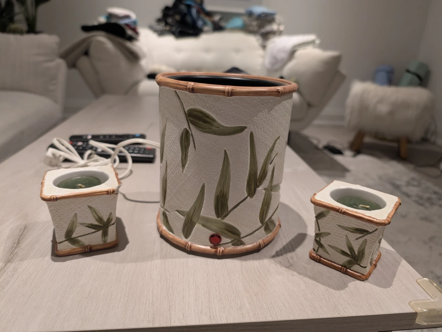 Bamboo Candle Warmer and candle holders set.