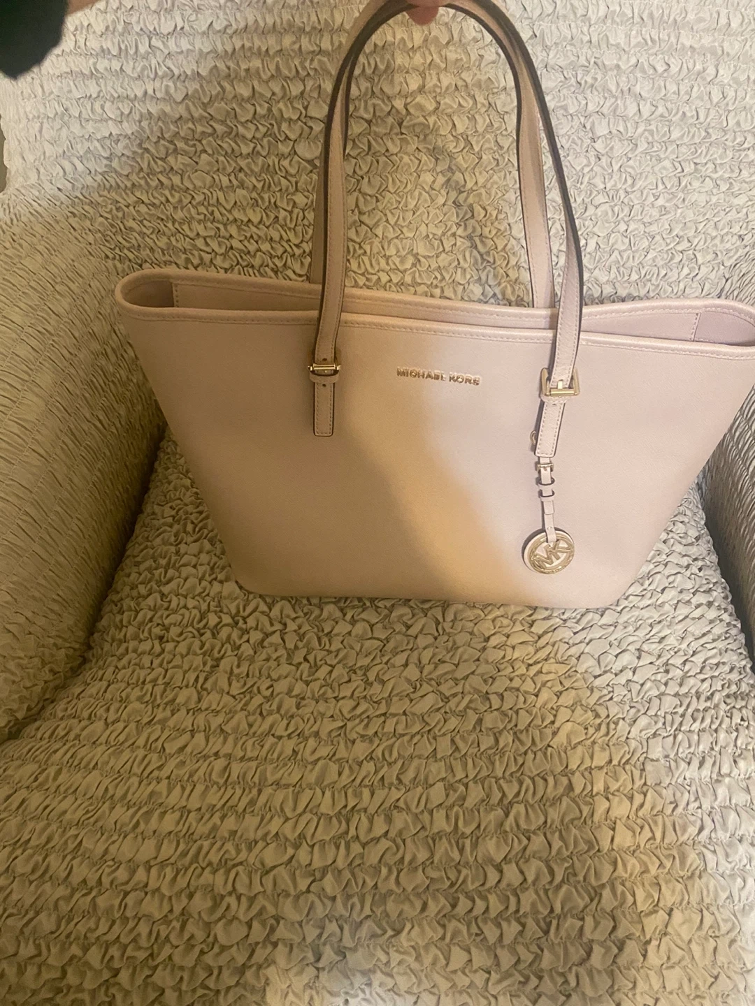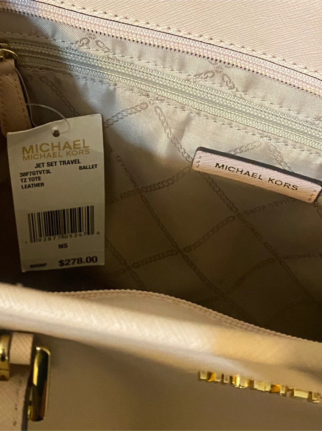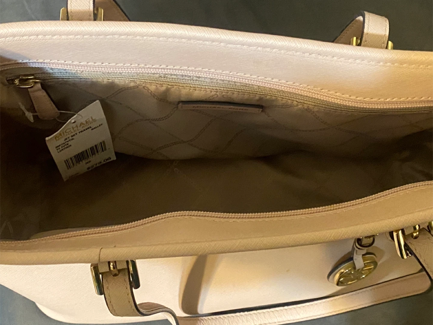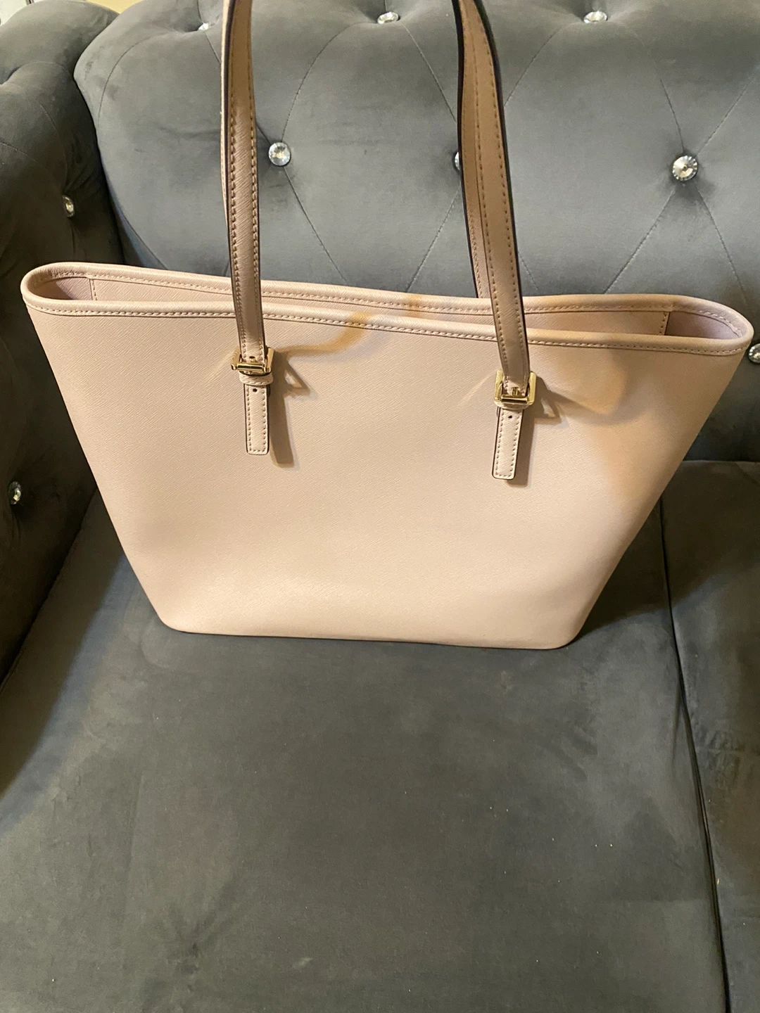 This is brand new with the tag. I received this as a gift but I have a more dark aesthetic so it is not my style. It is a very sleek and gorgeous handbag. With gorgeous gold attachment as pictured.