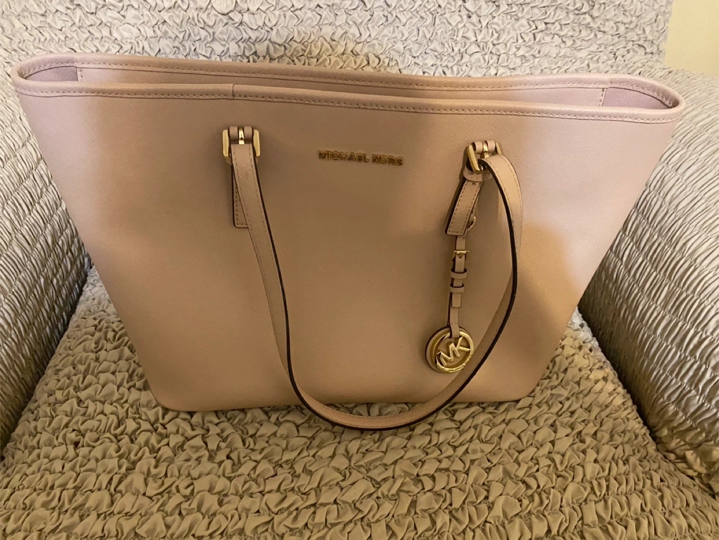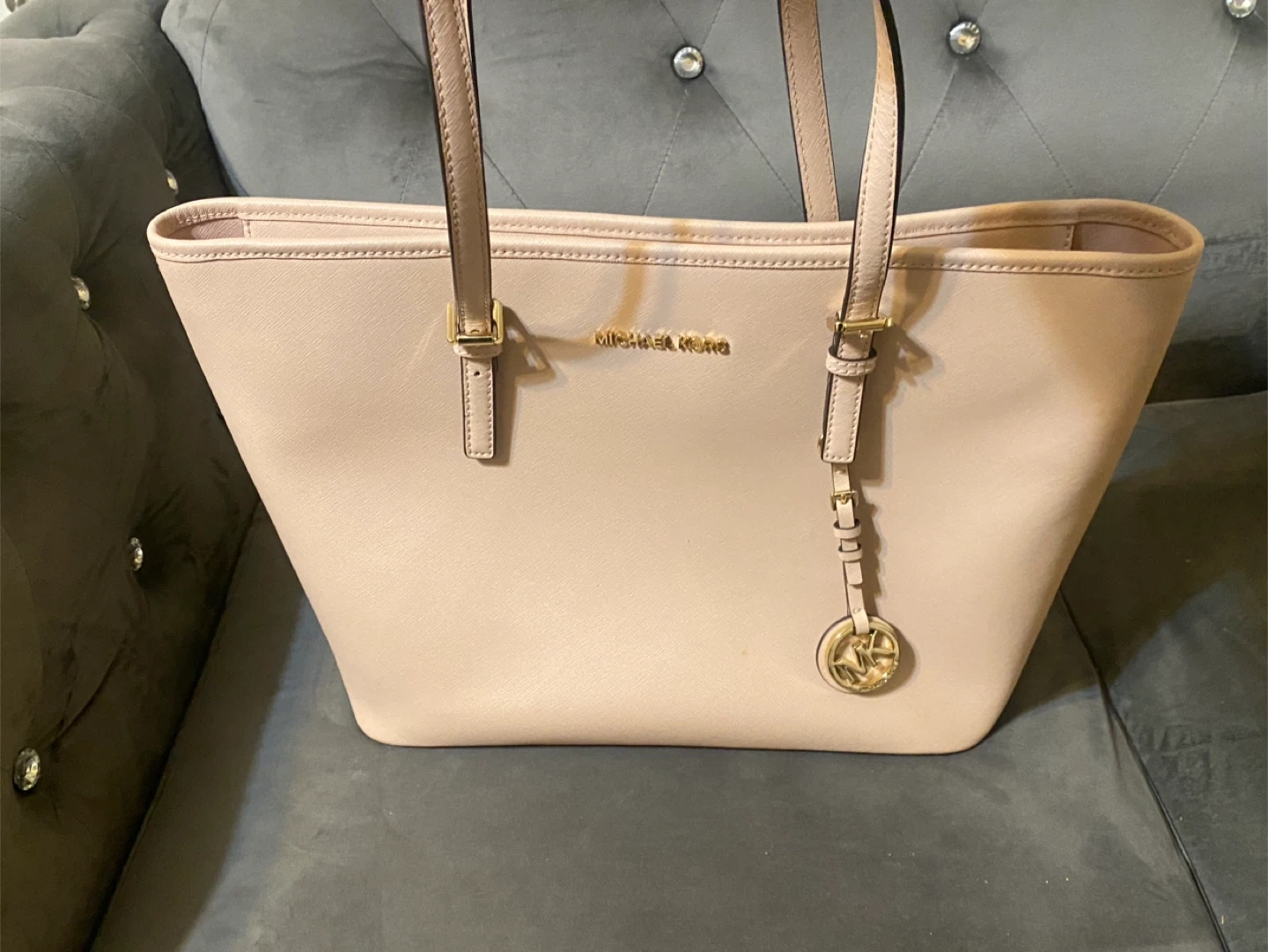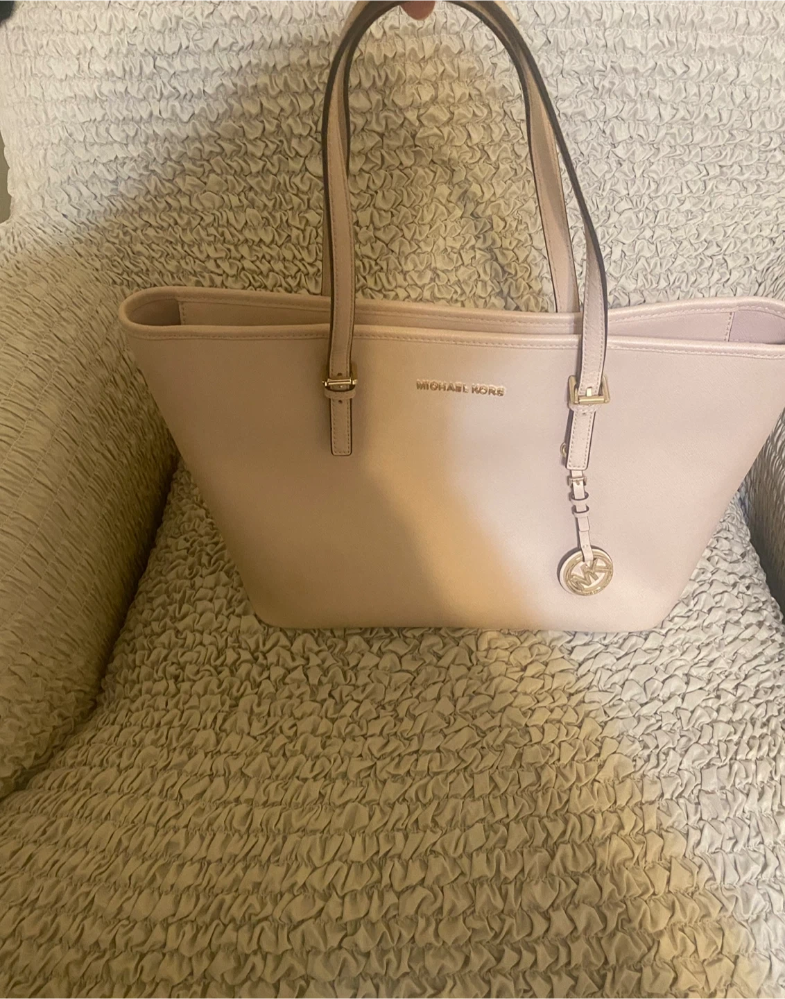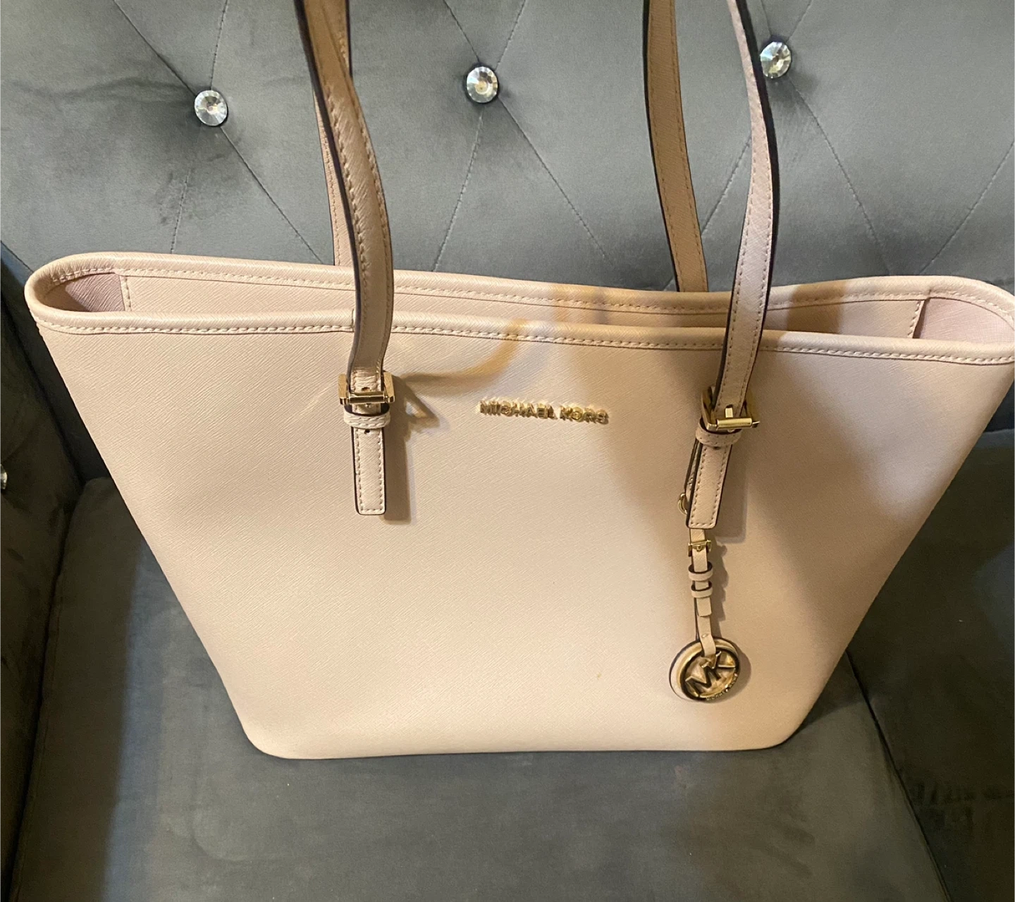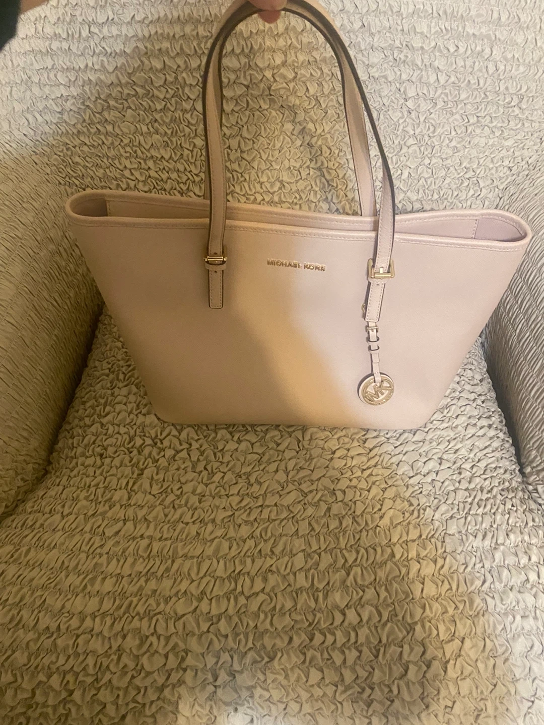This is brand new with the tag. I received this as a gift but I have a more dark aesthetic so it is not my style. It is a very sleek and gorgeous handbag. With gorgeous gold attachment as pictured.