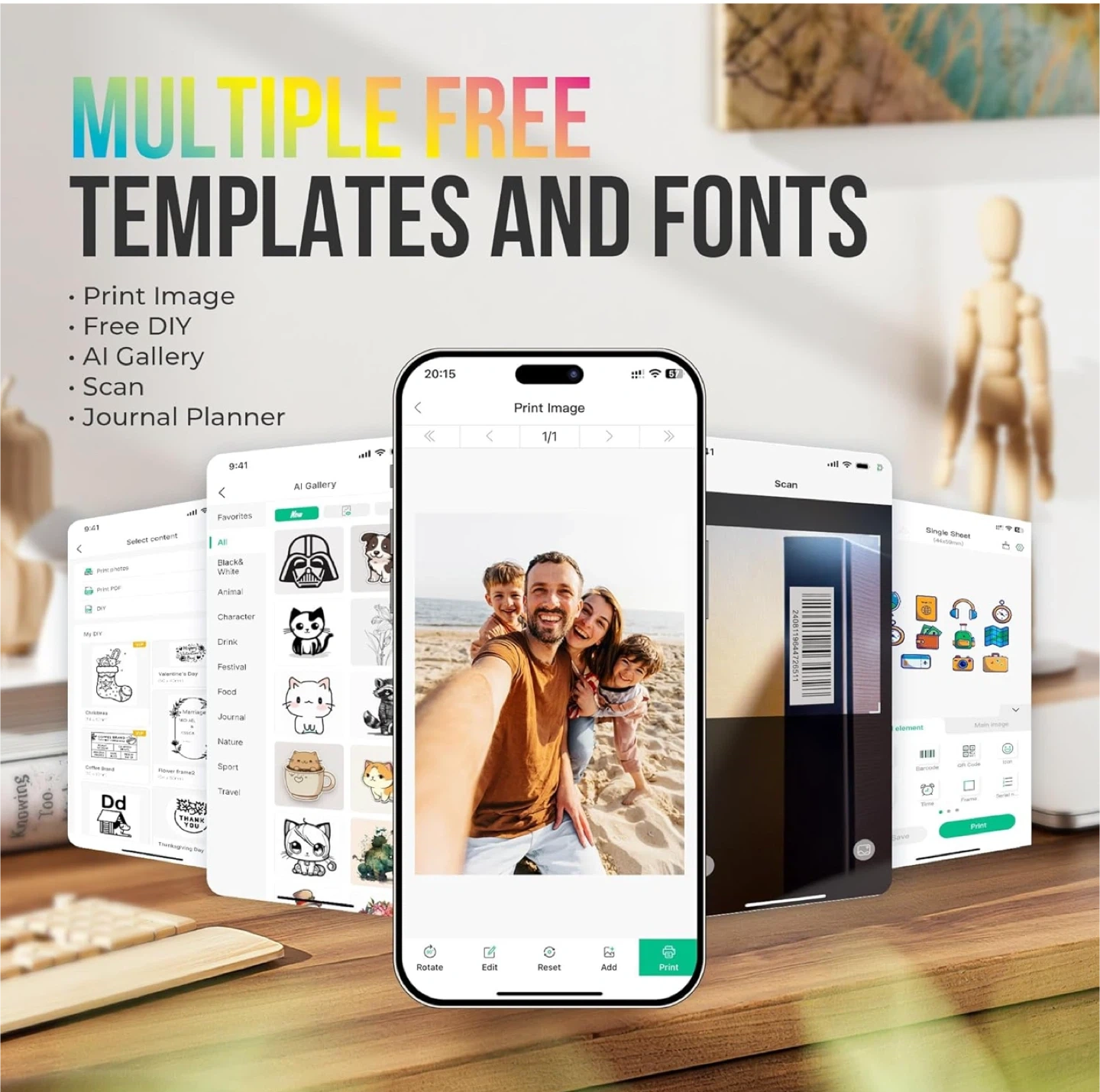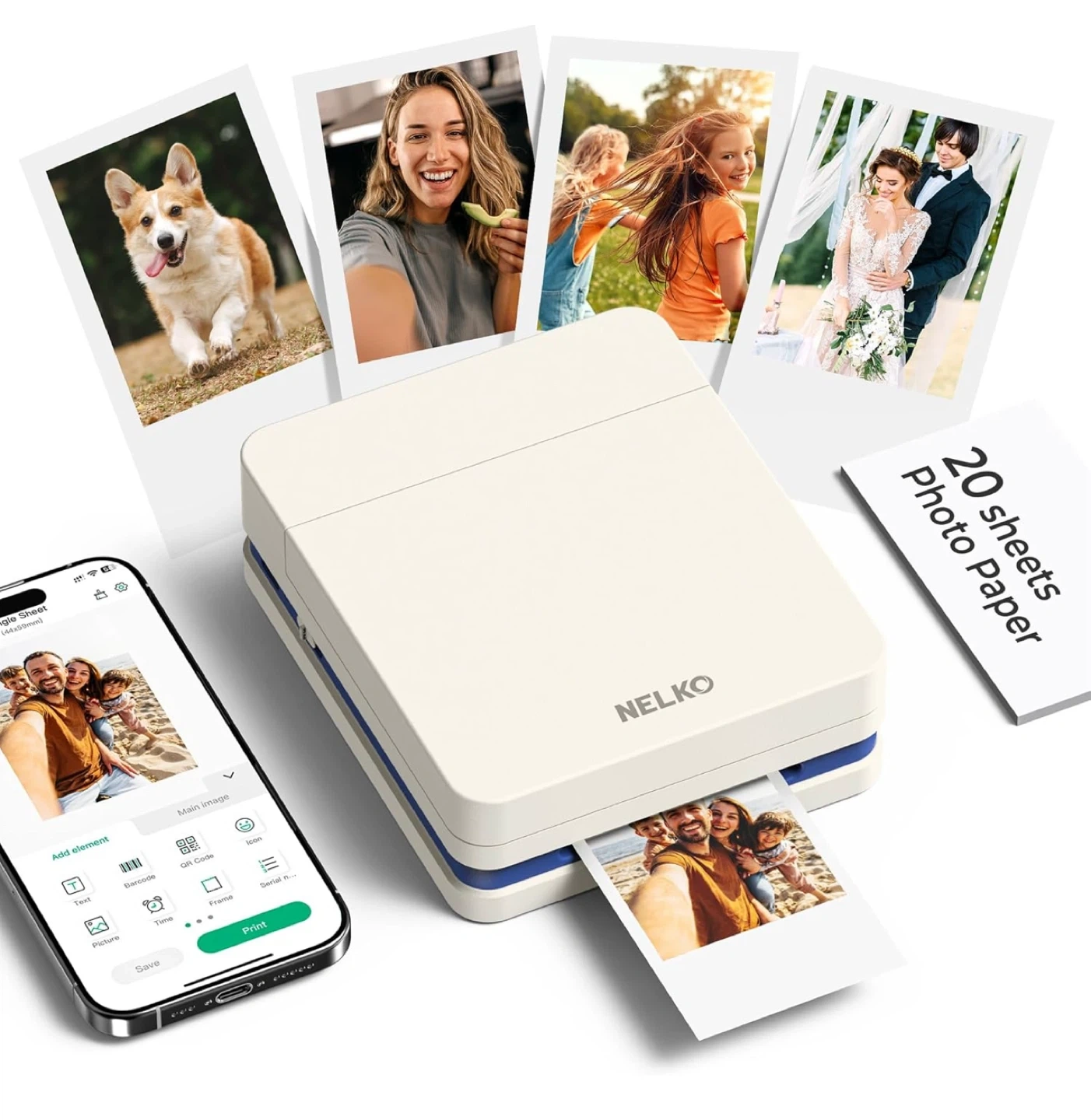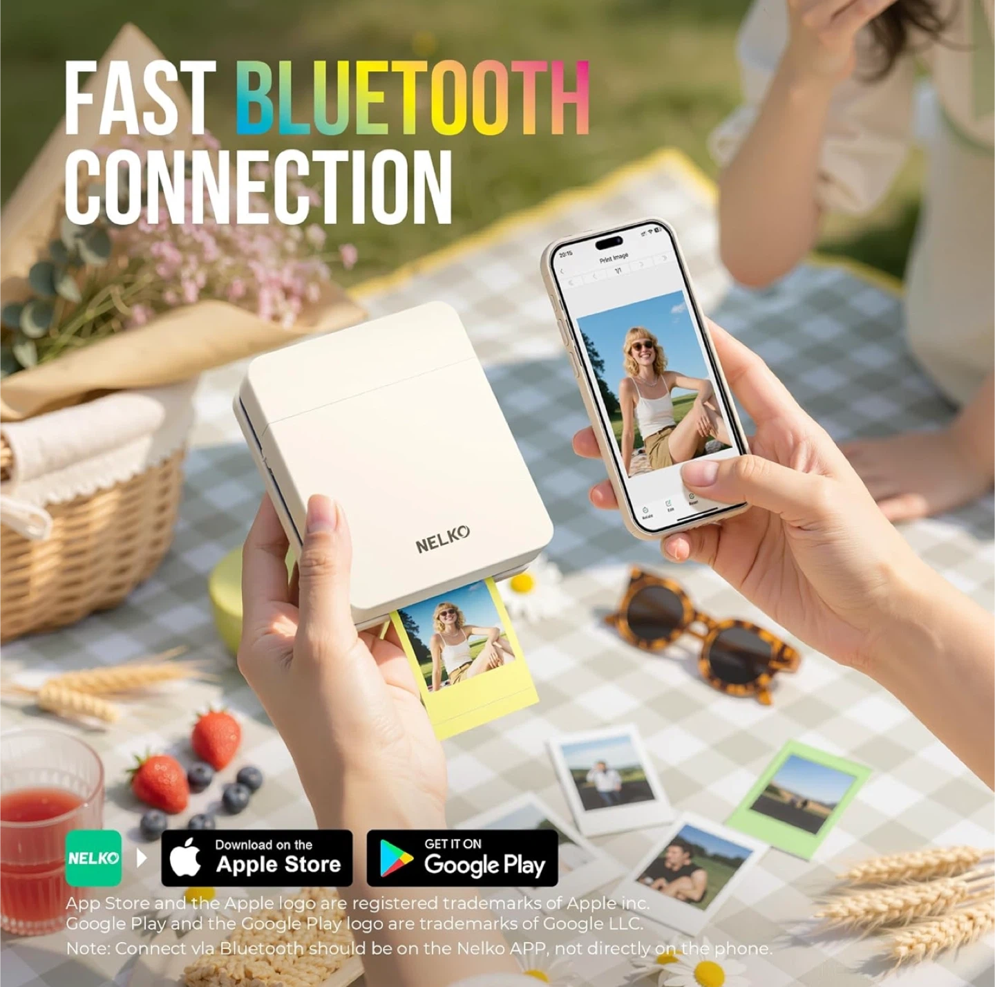 PP01 Instant Smartphone Photo Printer, Portable Mini Color Wireless Mobile Printer, Sticky-Back Photos, Bluetooth Compatible with iOS & Android Devices, Fun Editing App, Snow White