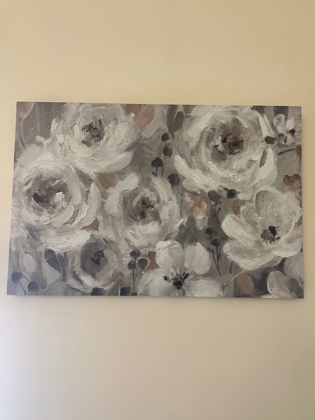60Elevate your space with this serene, oversized floral canvas! The textured, soft tones of white, beige, and taupe add a sophisticated touch to any living room, bedroom, office, or entryway. Its neutral palette fits easily with modern, farmhouse, or minimalist décor styles. Size: Approx. 36” x 24” Condition: Excellent – no damage, stains, or fading Style: Abstract florals, textured, neutral colors Ready to hang: Lightweight and simple to mount