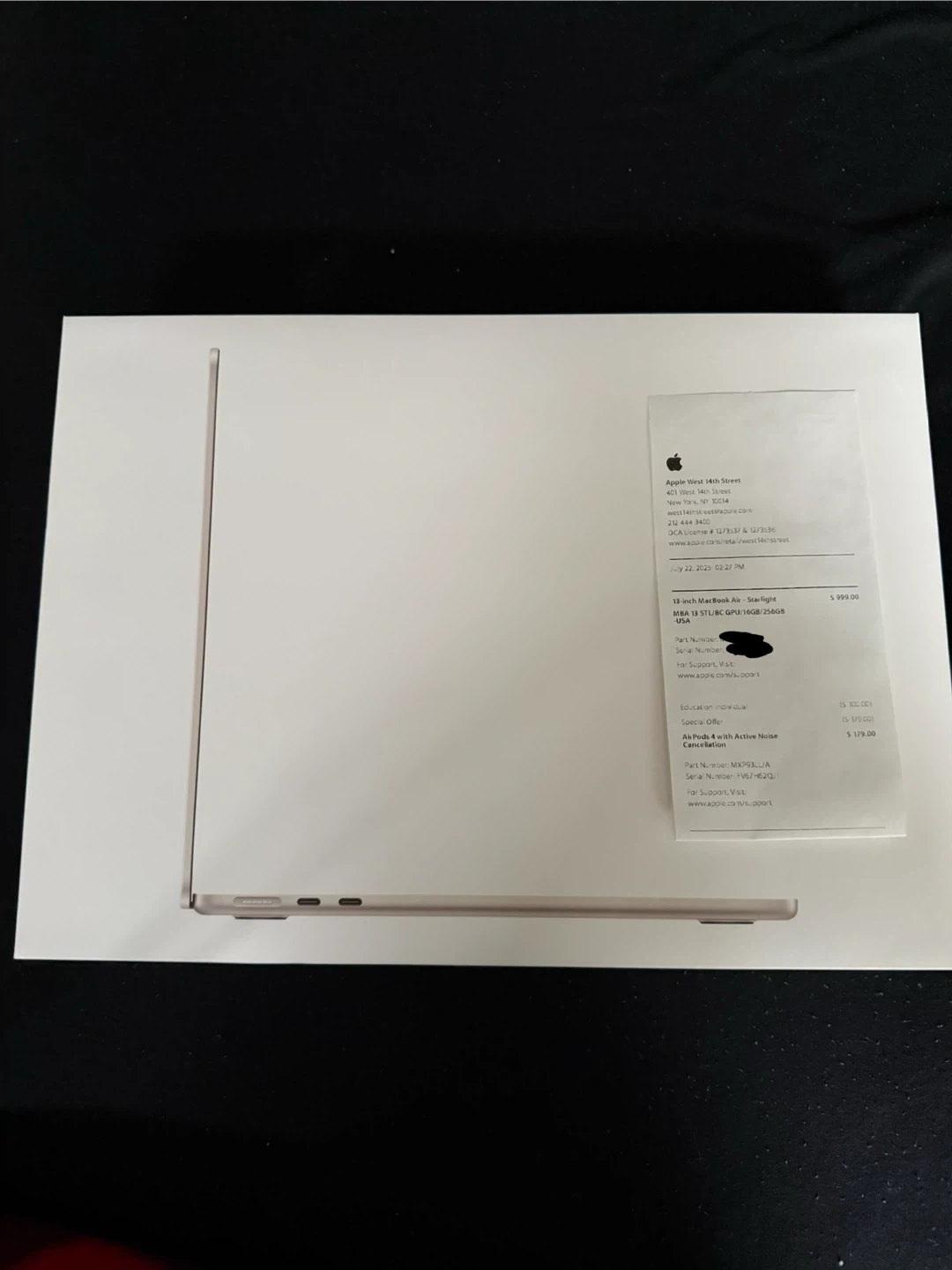 0Selling a new 13-inch MacBook Air in the Starlight color! It comes with 8GB of unified memory and a 256GB SSD. The original price was $1,179.00. The box is included
