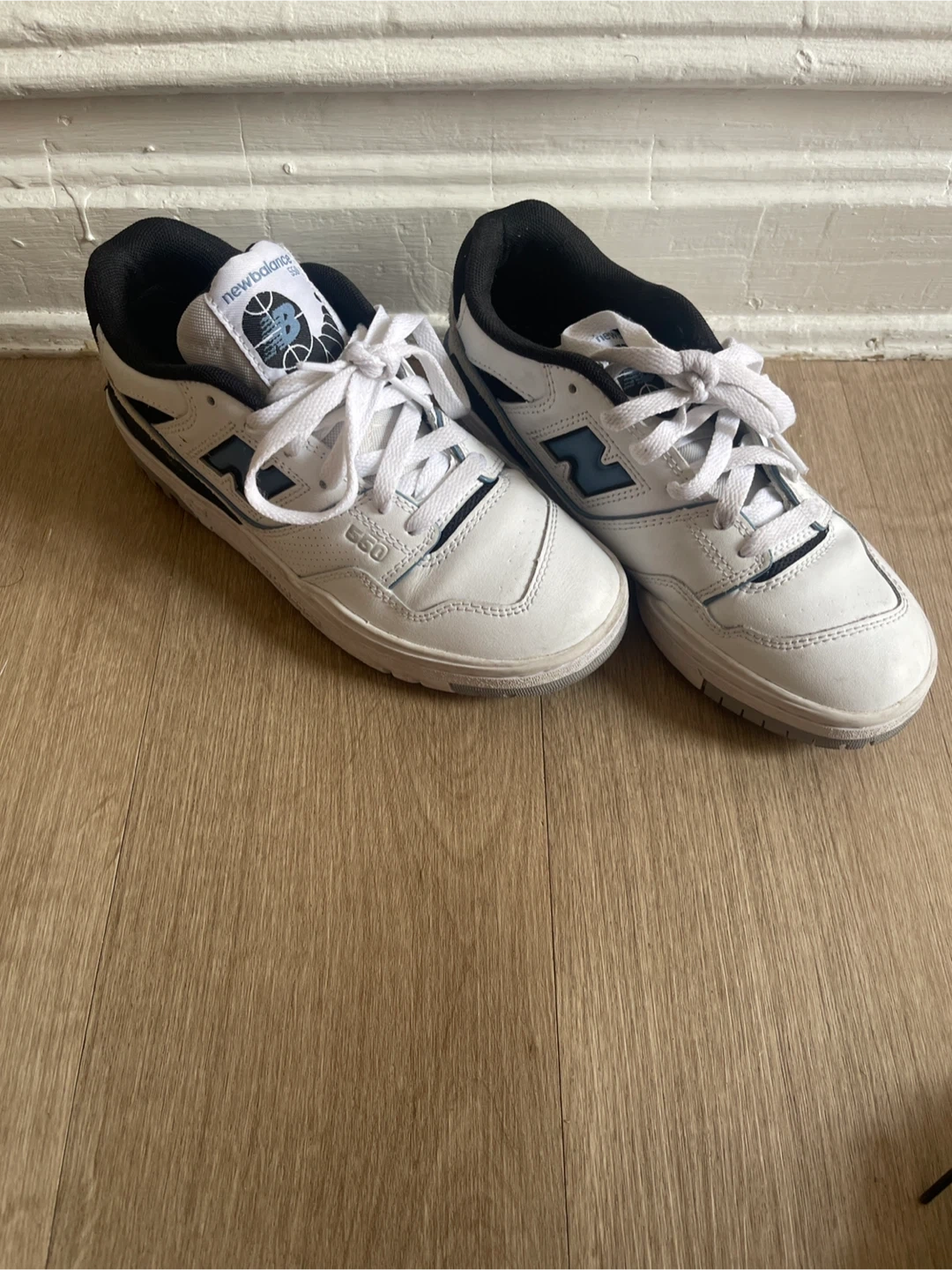 Selling a pair of New Balance 550 sneakers in white and blue. They're in good condition and ready for a new home! Perfect for casual wear or hitting the court.