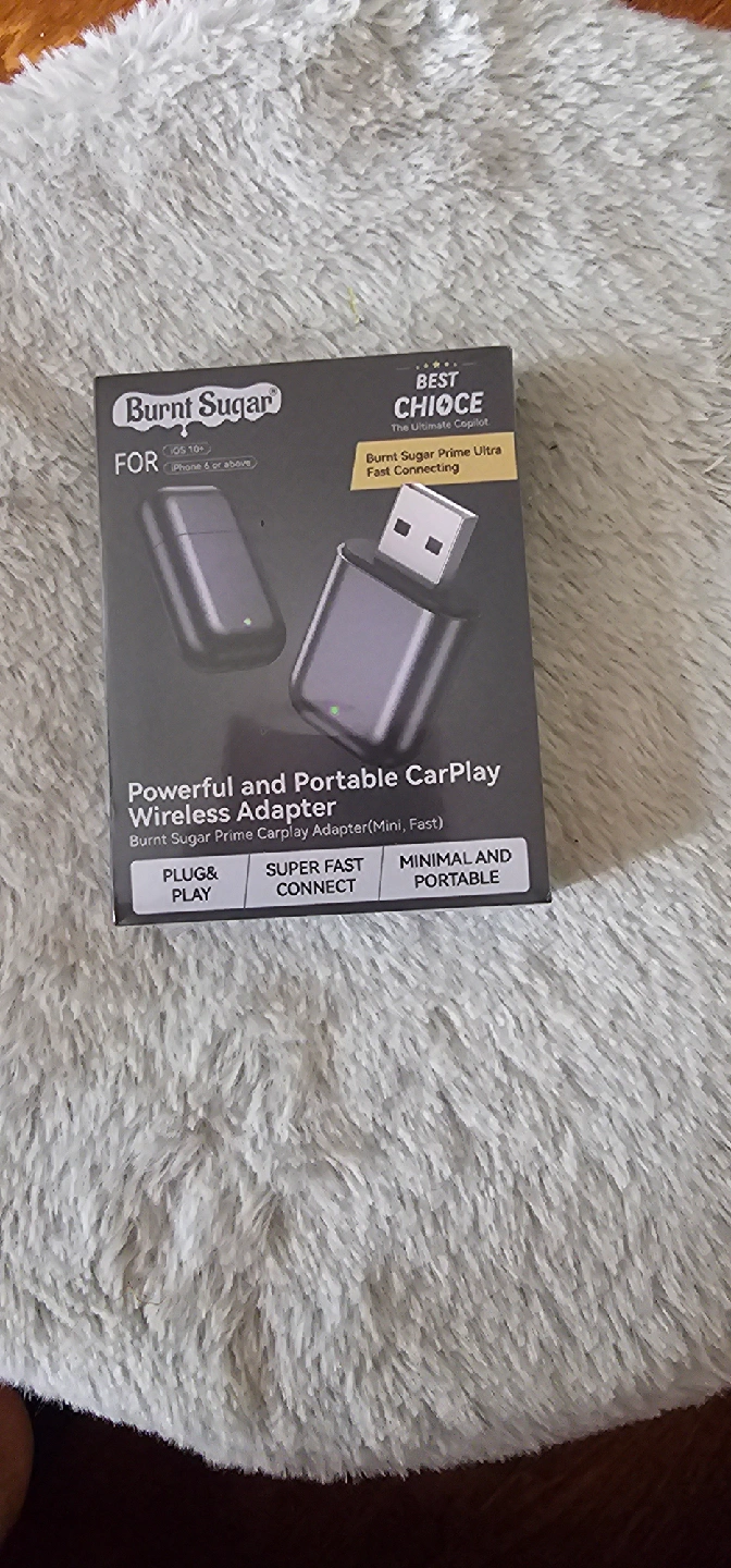 Selling a brand new Burnt Sugar Prime CarPlay Adapter (Mini, Fast)! It's powerful and portable, offering super fast connection. It's designed for easy plug and play use. The material is PC+ABS. It can be powered via USB-A or USB-C