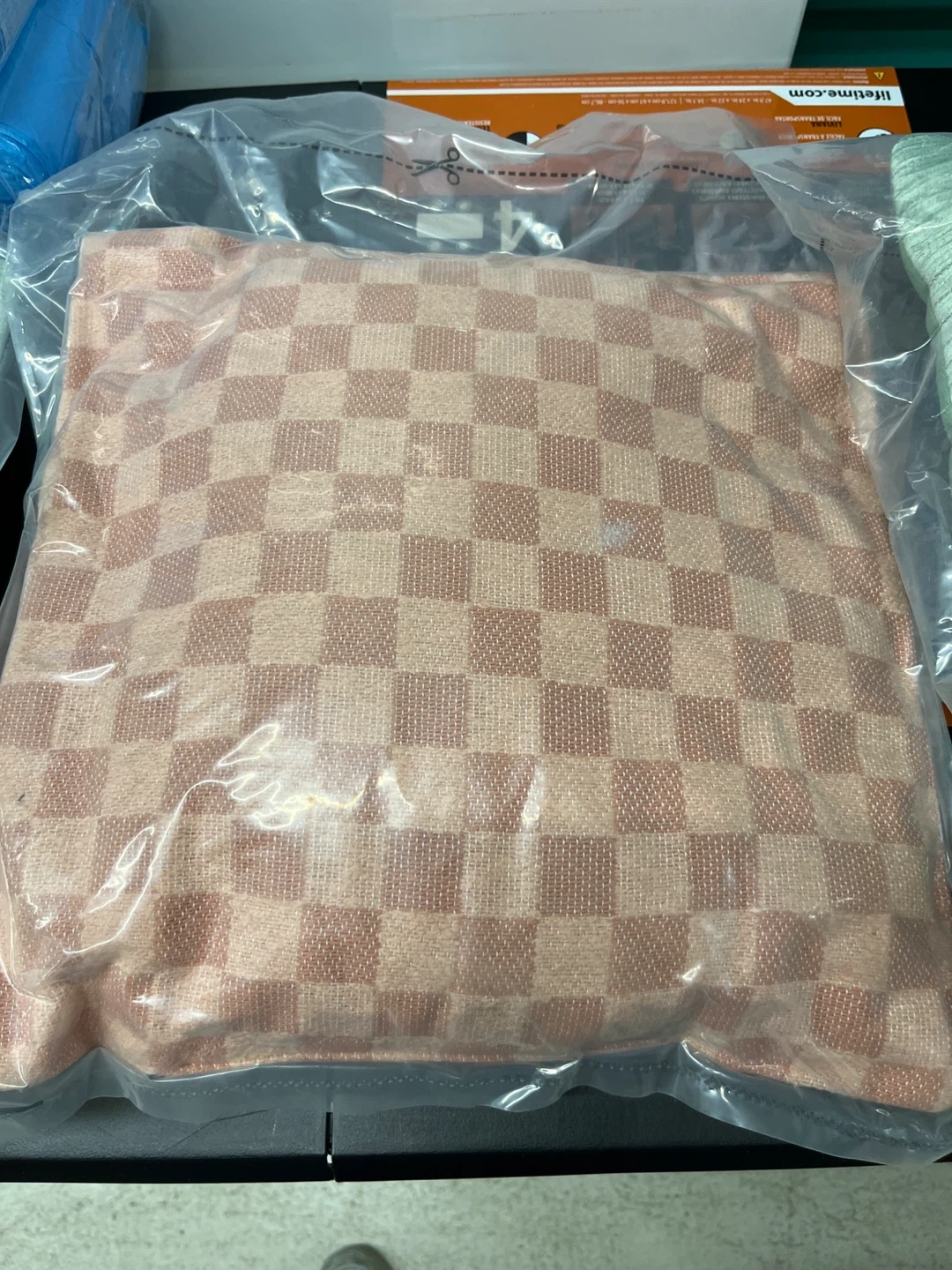 I have a new decorative throw pillow still in its original packaging. The pillow is made of 100% polyester. Perfect for adding a touch of style to your living room or bedroom!