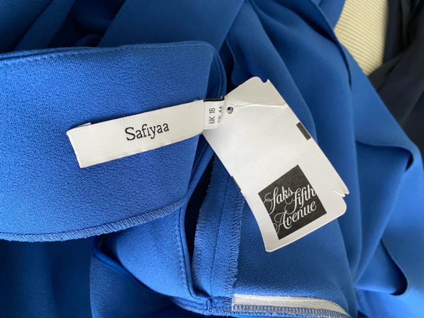 569Selling a Safiyaa gown, new with tags from Saks Fifth Avenue. Purchased for over $2,000. Never worn but see a couple of very minor pulls or marks as shown in photos (not noticeable). Pick up near Gerrard and Woodbine. Thanks for looking!
