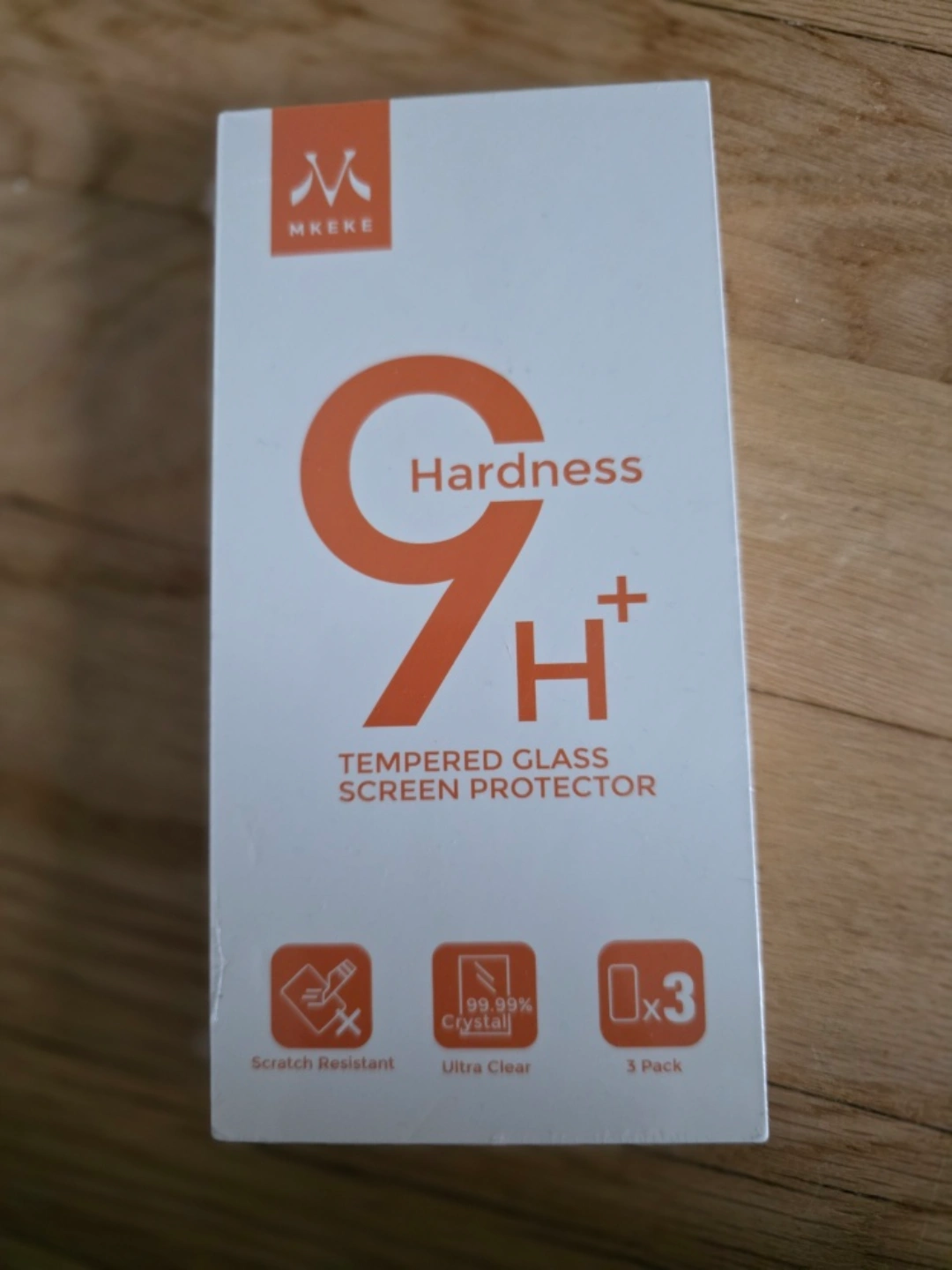 Selling a new MKEKE screen protector for the iPhone 16 Pro with a 6.3-inch screen. This is a tempered glass screen protector with 9H+ hardness for scratch resistance and ultra-clear visibility. The box includes 3 screen protectors