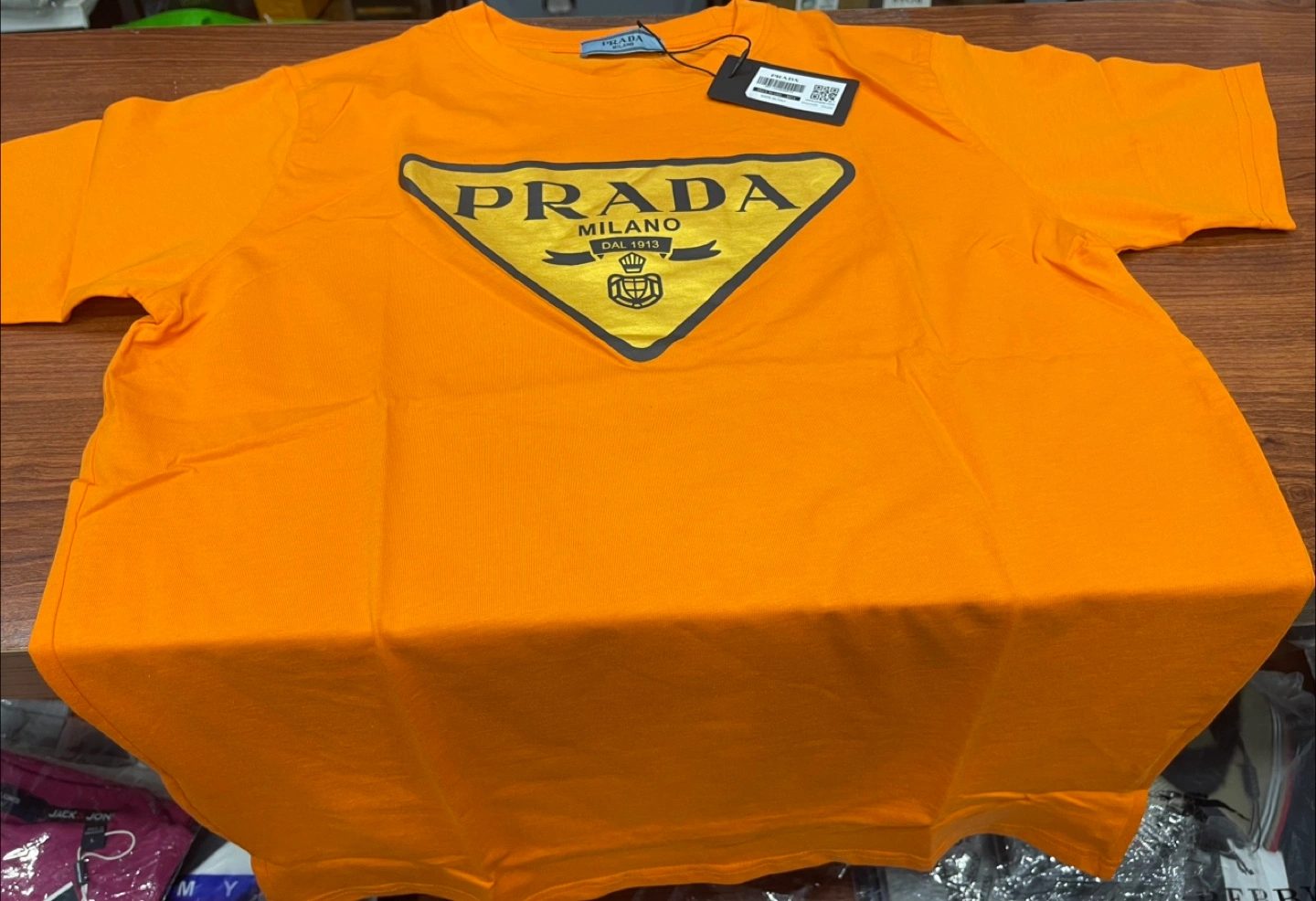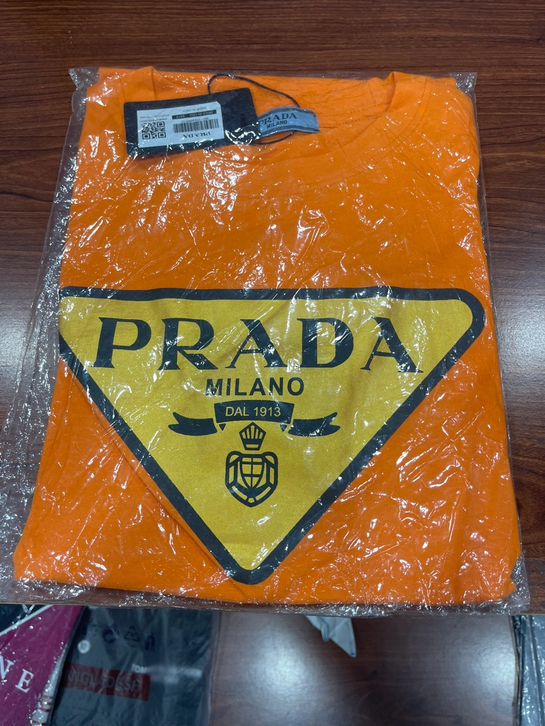 I'm selling a brand new Prada Milano T-shirt. It's orange and size M. Never been worn and still in the original packaging!