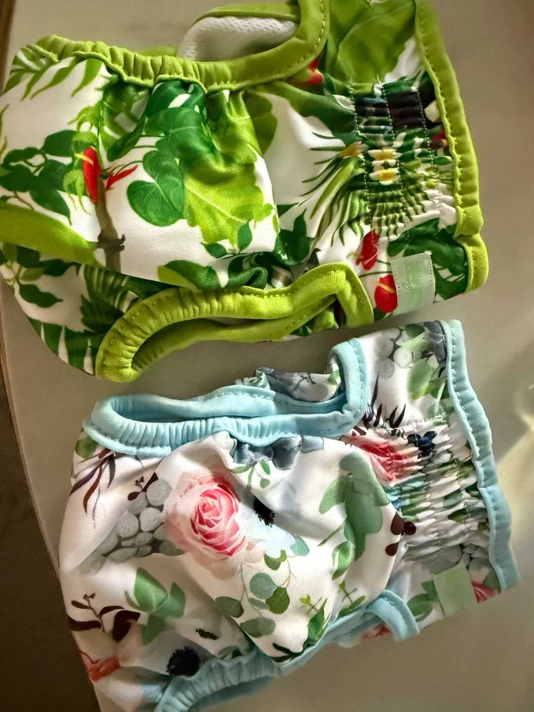 222I'm selling a new set of wegreeco luxury washable reusable diapers. This is a set of 2 in size small and floral patterns. It is good for small dogs 🐕