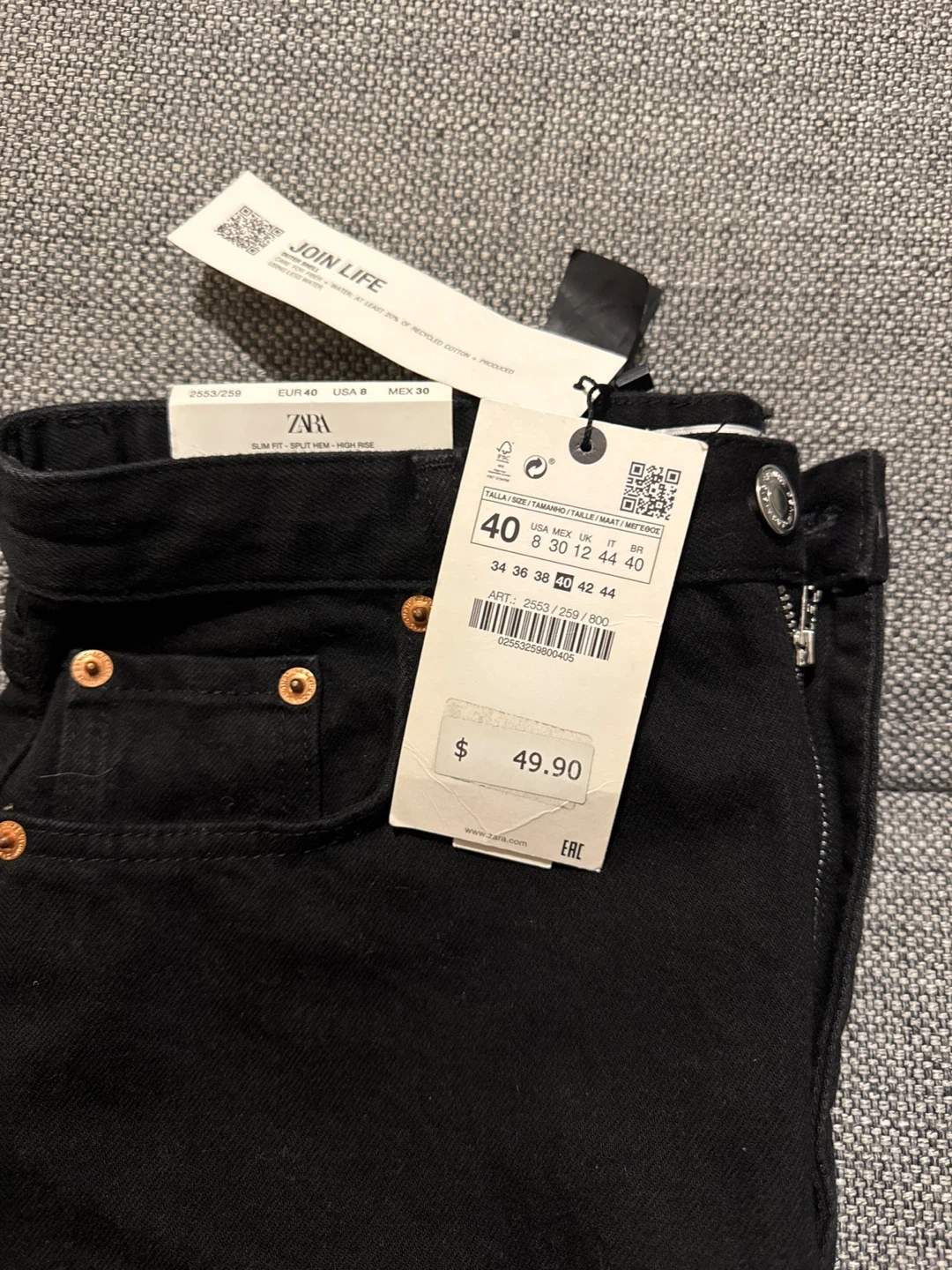 These are a new pair of Zara slim fit, high waist jeans in black! The size is US 8 / EUR 40 / MEX 30. Originally bought for $49.90 BRAND NEW Pick up at Columbus Circle