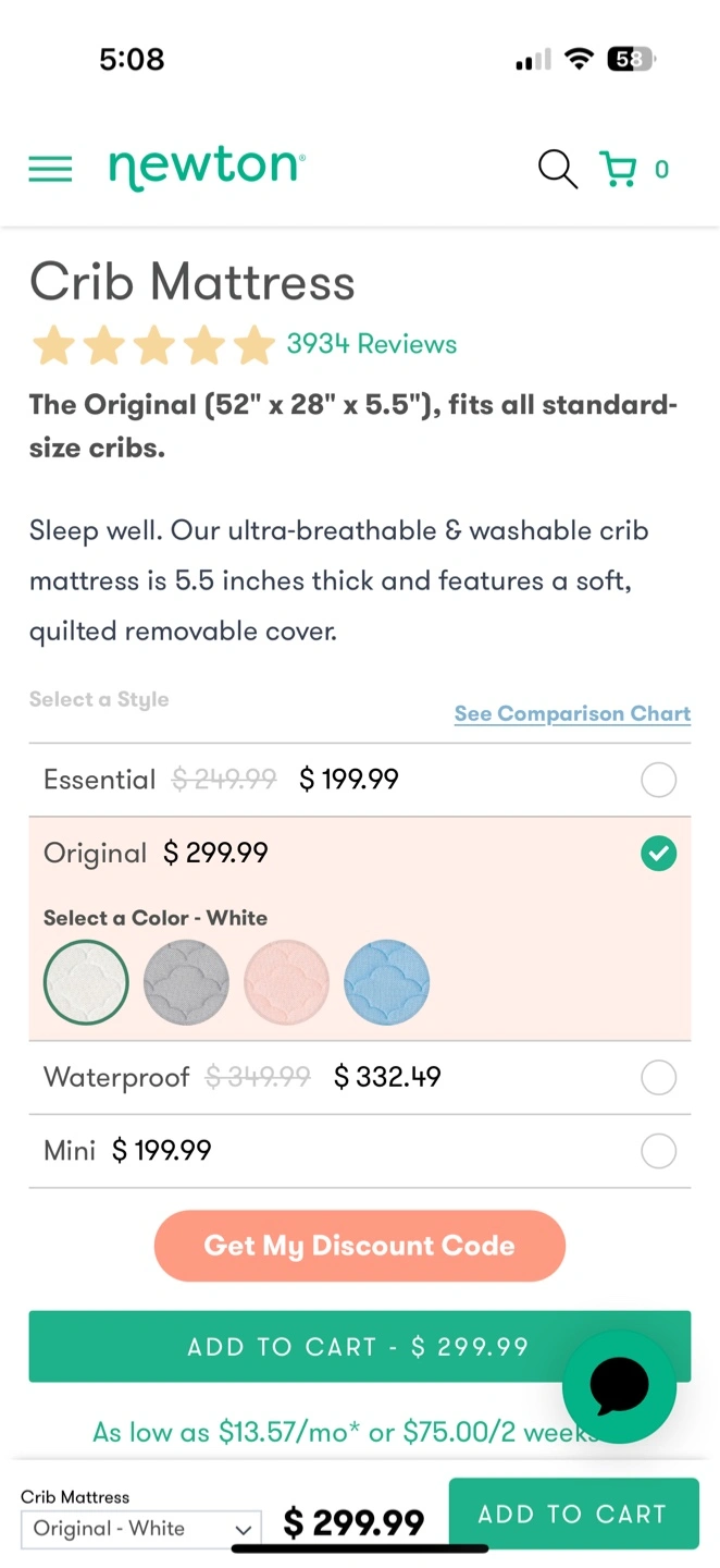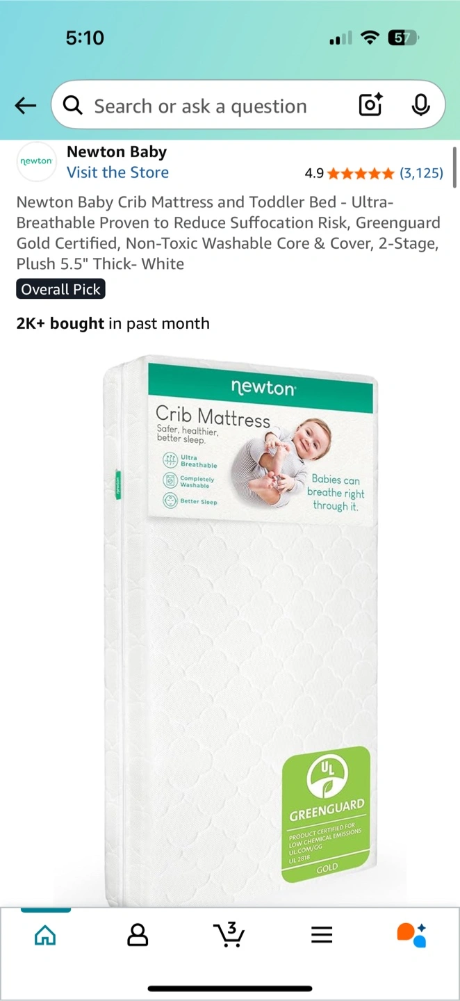 Selling a Newton Baby Crib Mattress in white! This is the original size (52" x 28" x 5.5") and fits all standard-size cribs. It features an ultra-breathable & washable core and cover. It's also Greenguard Gold Certified, ensuring it's non-toxic and safe for your baby. Retails for $299.99