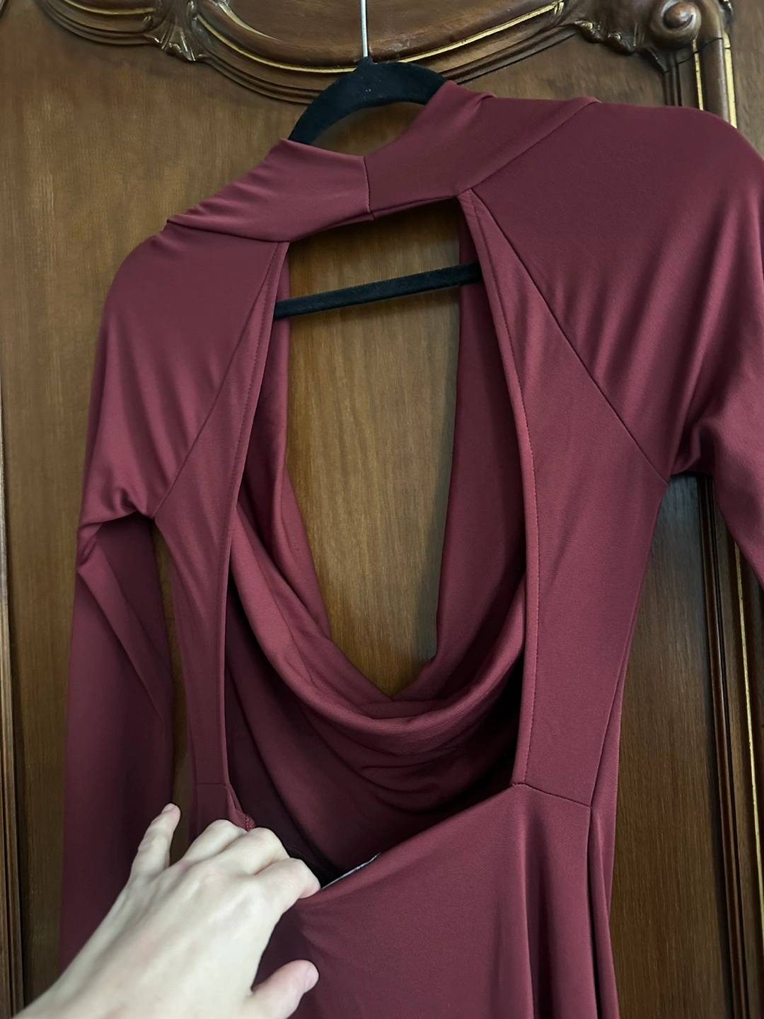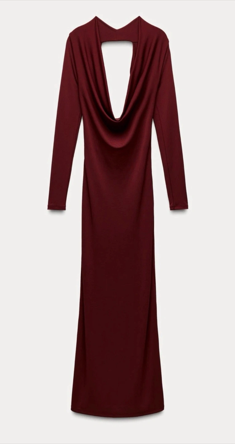 Zara Burgundy Draped Open Back Dress Plunging Neck Medium NEW