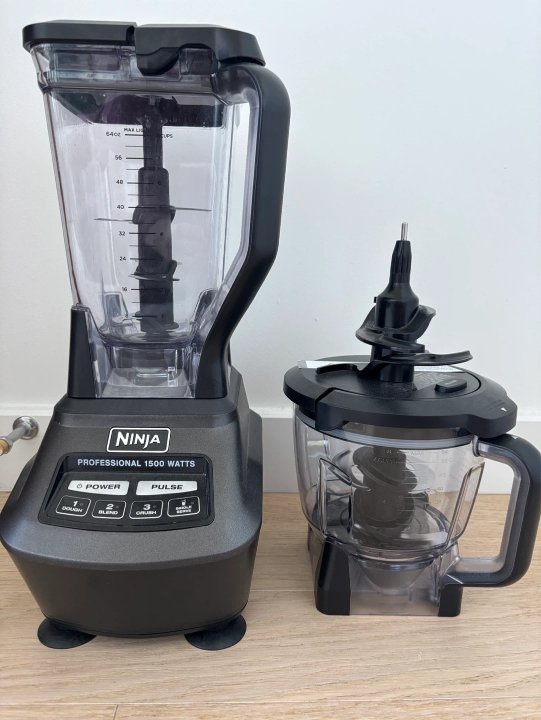 Ninja Professional 1500 watt blender. Includes pitcher and food processor bowl. It's great for making smoothies, sauces, and dough! Has power, pulse, dough, blend, crush, and single serve settings.