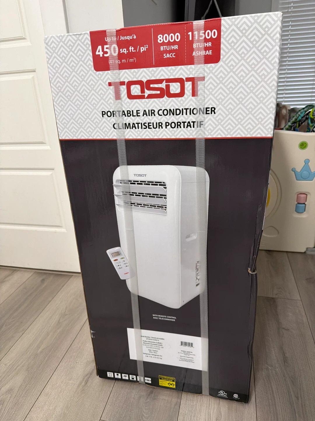 Brand new TOSOT portable air conditioner. Box is unopened and still sealed.