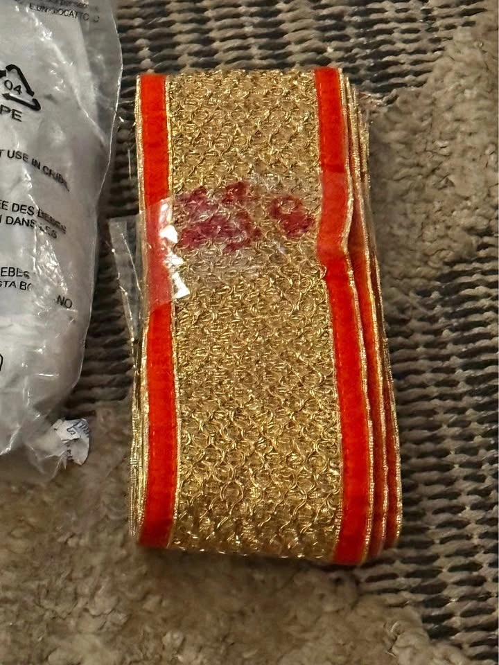 This is a one single long ethnic piece of fancy brocade like lace border measuring a little over 8 feet long with a width of 2 3/4” which can be be cut to your desired length and sewn on over the bottoms of dresses or sashes across the chest or used as emblems on the shoulders or the list goes on and on. It all comes down to your creativity and talent and of course the designer in you to create or make one or more outfits the distinctive style and look of the one of a kind creation that no one else can match or ever duplicate. This is available for local pickup by Schaumburg and Barrington Road in Schaumburg IL 60194.