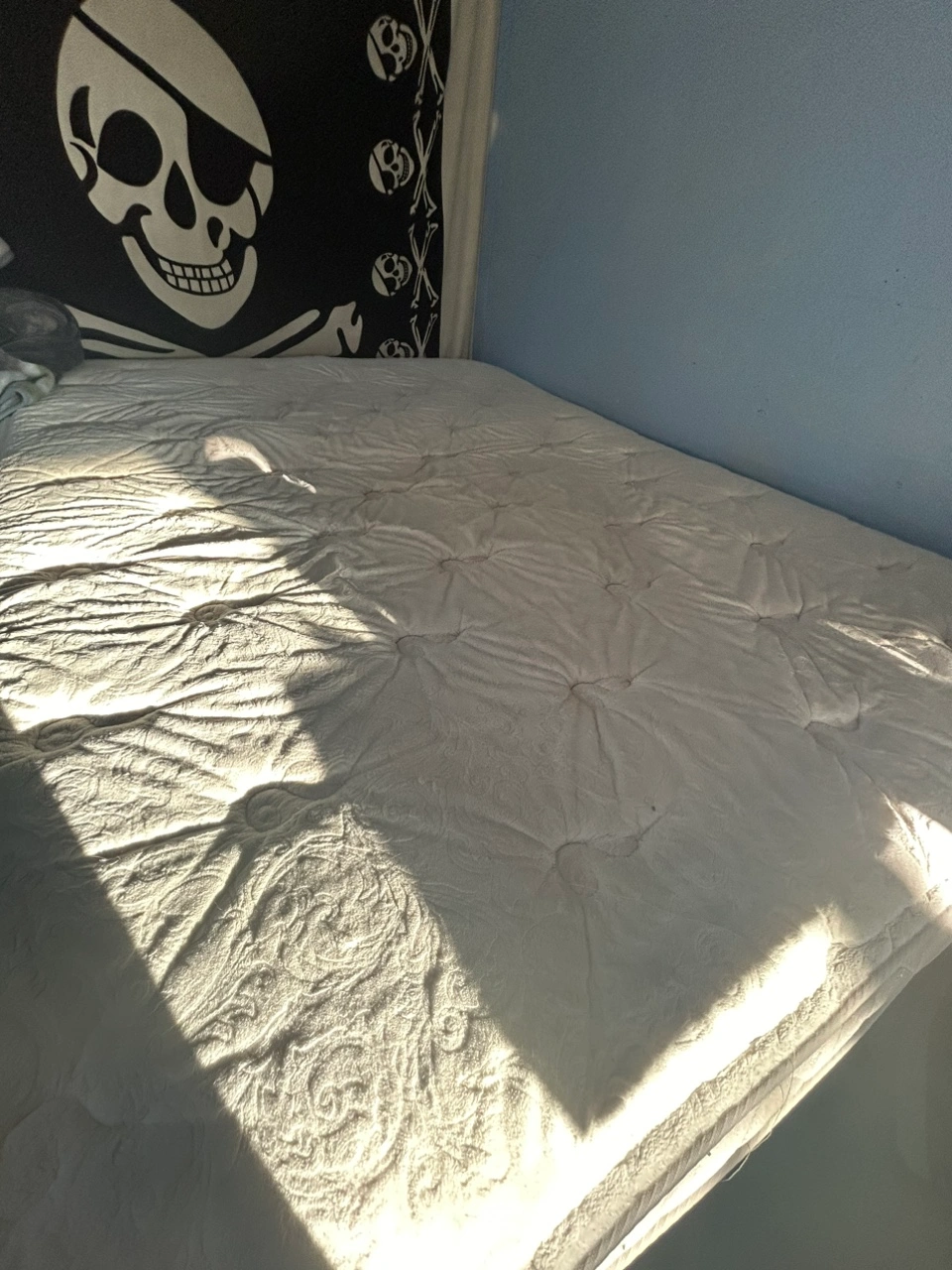 Have had a mattress cover on it for the two years I had it. If you pick it up tonight it’s free, but I will unfortunately have to get rid of it later this evening as I got a new one and do not have help to remove it any other time
