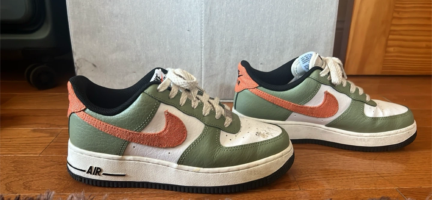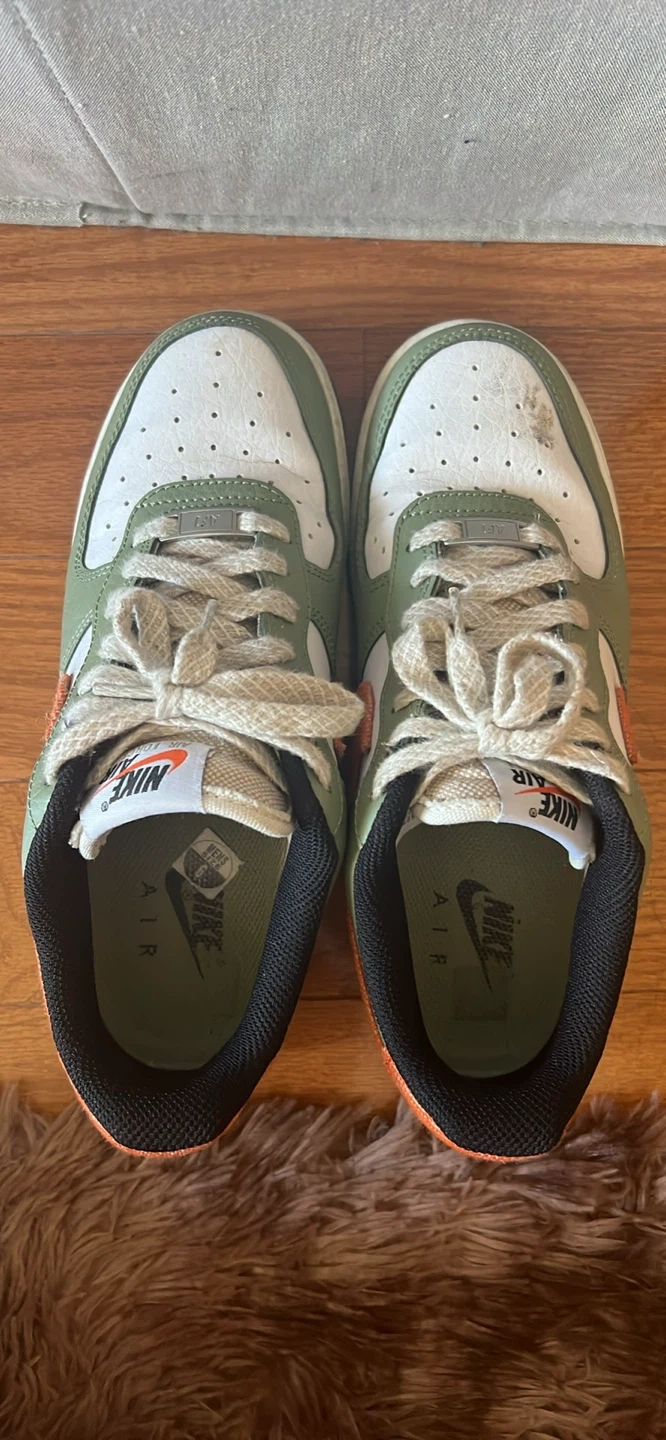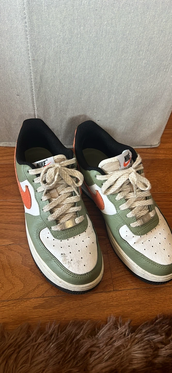 Selling a pair of Nike Air Force 1 Low sneakers in an olive green and orange colorway! They are a men’s size 6 and show some signs of wear, but still have plenty of life left. Perfect for casual wear or hitting the court.