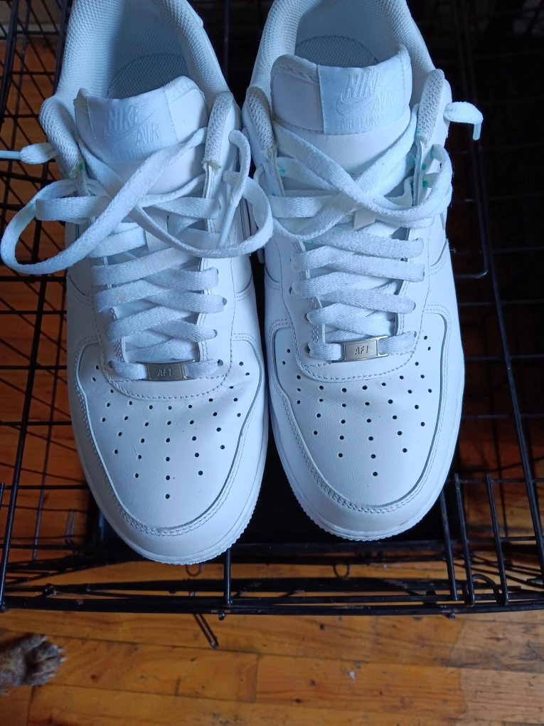Selling a pair of classic white Nike Air Force 1s. They're in good condition and ready for a new home! These shoes are a staple and go with just about anything